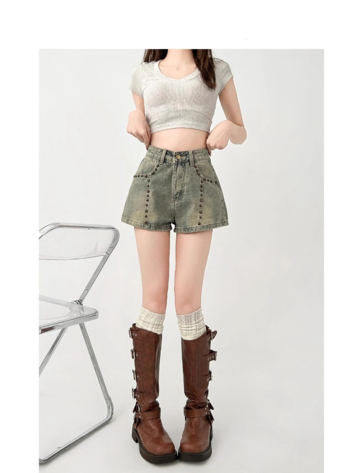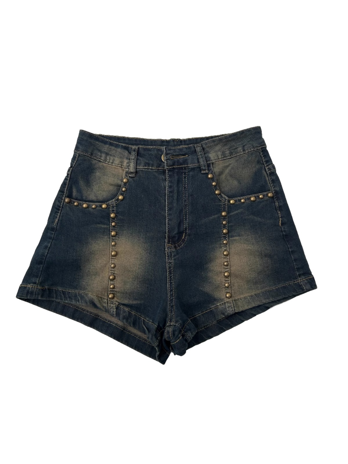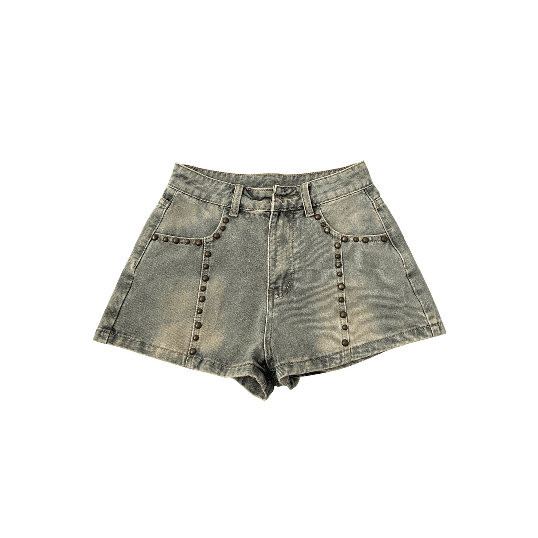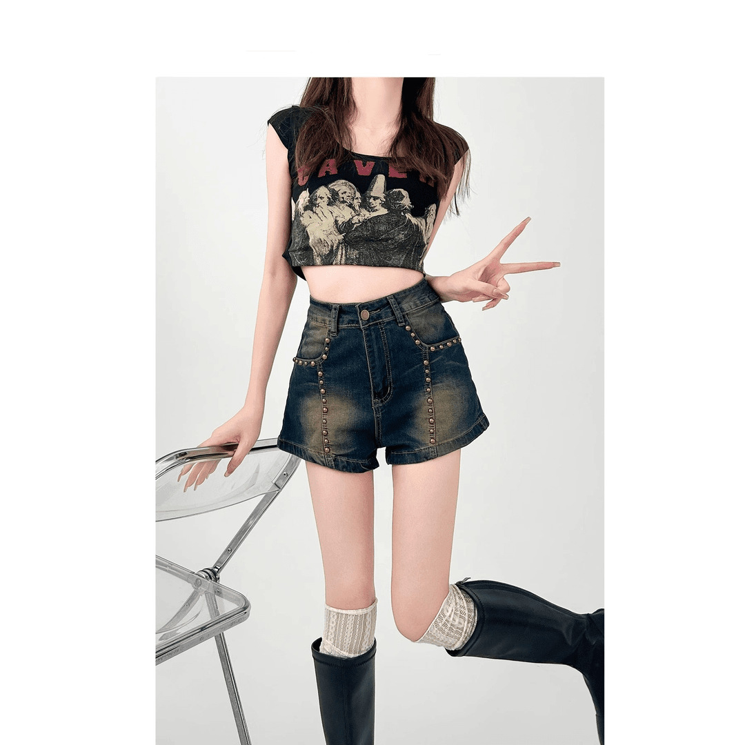 여성용 플러스 사이즈 뚱뚱한 mm 리벳 데님 반바지 2025 여름 디자인 슬리밍 살짝 뚱뚱한 바지 핫 소녀 핫 팬츠 하이 웨이스트