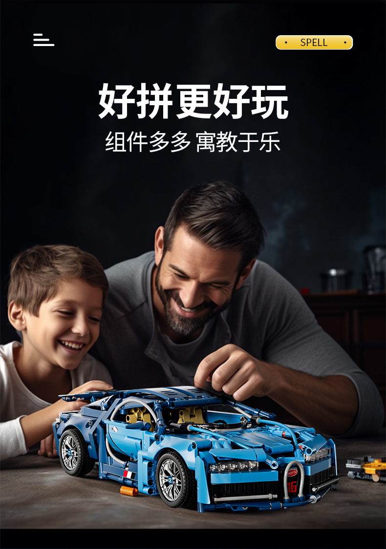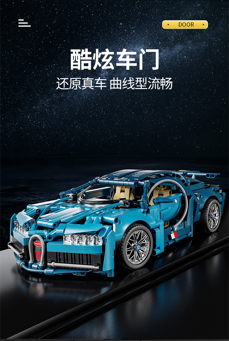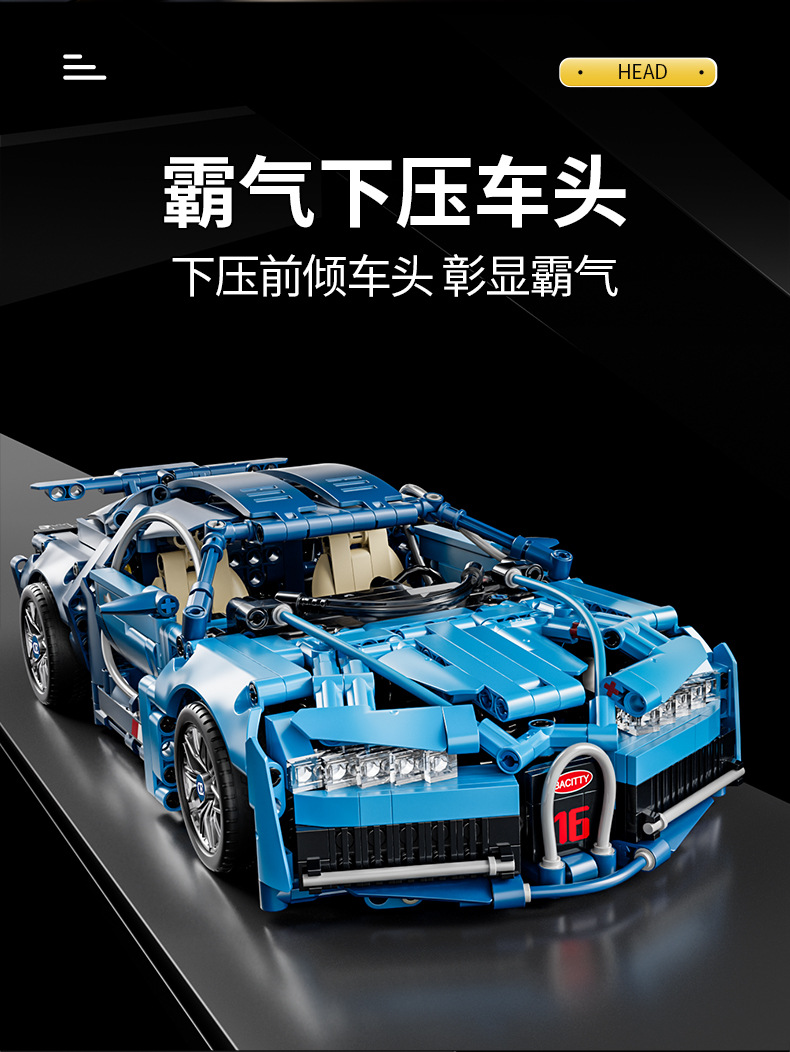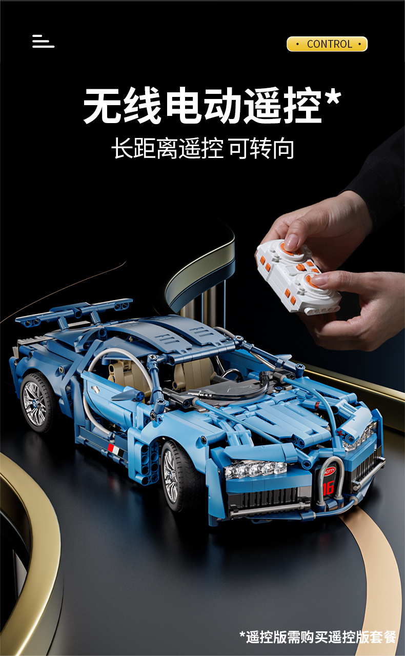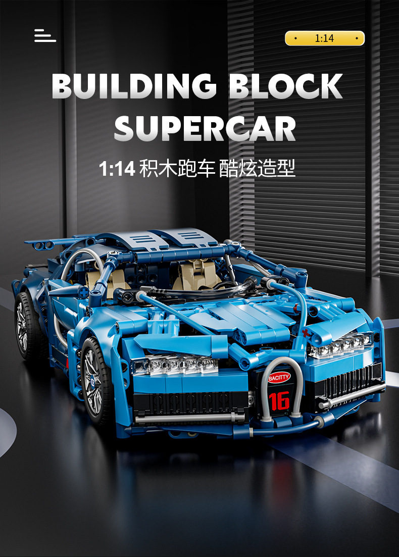 도매 블루 부가티 원격 조종 스포츠카 사이버펑크 스포츠카 조립 퍼즐 블록 모델 장난감 선물스토어 가기