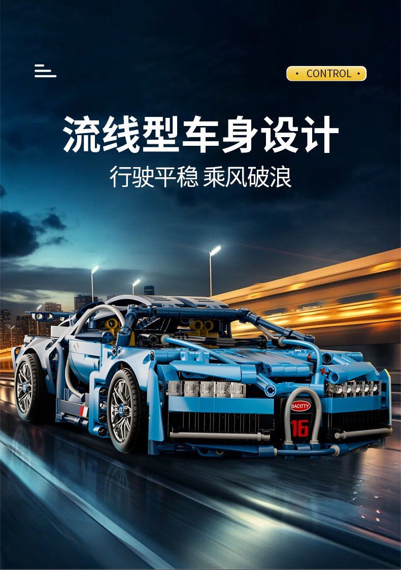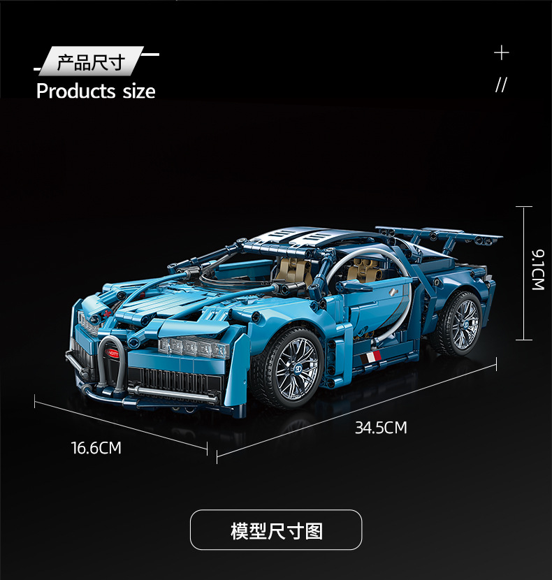 도매 블루 부가티 원격 조종 스포츠카 사이버펑크 스포츠카 조립 퍼즐 블록 모델 장난감 선물
