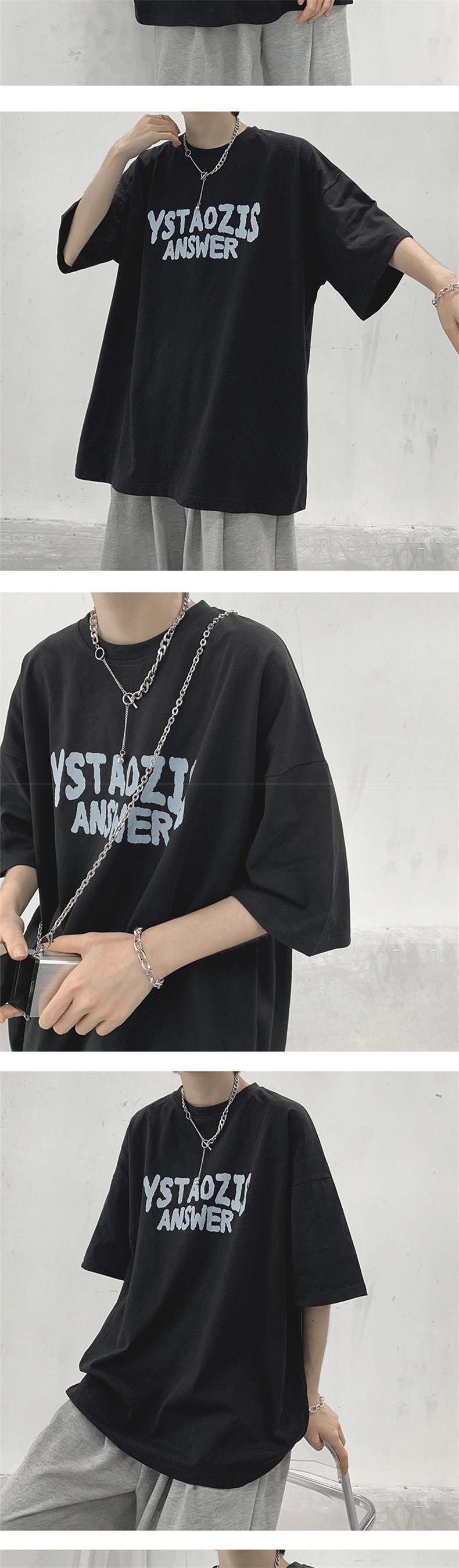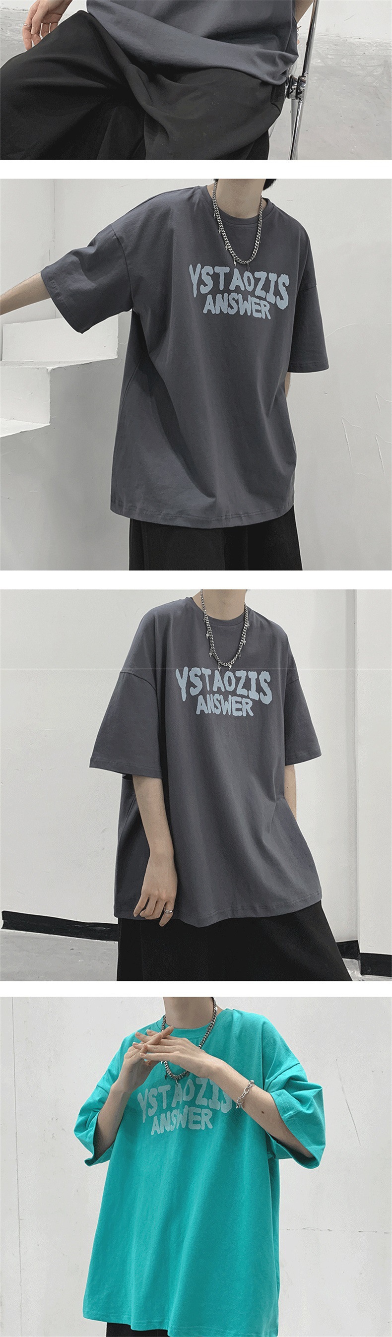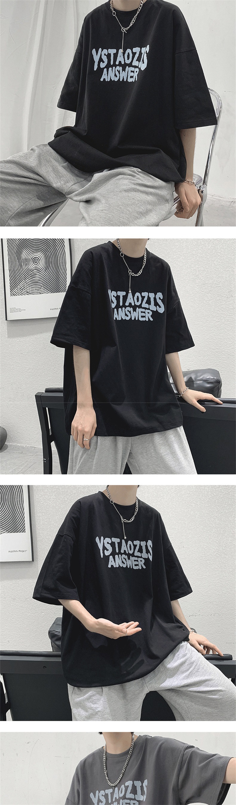티셔츠 남성 여름 트렌디 커플 착용 5부소매 티셔츠 시크 레트로 홍콩 스타일 다용도 반팔 화이트 반소매 탑