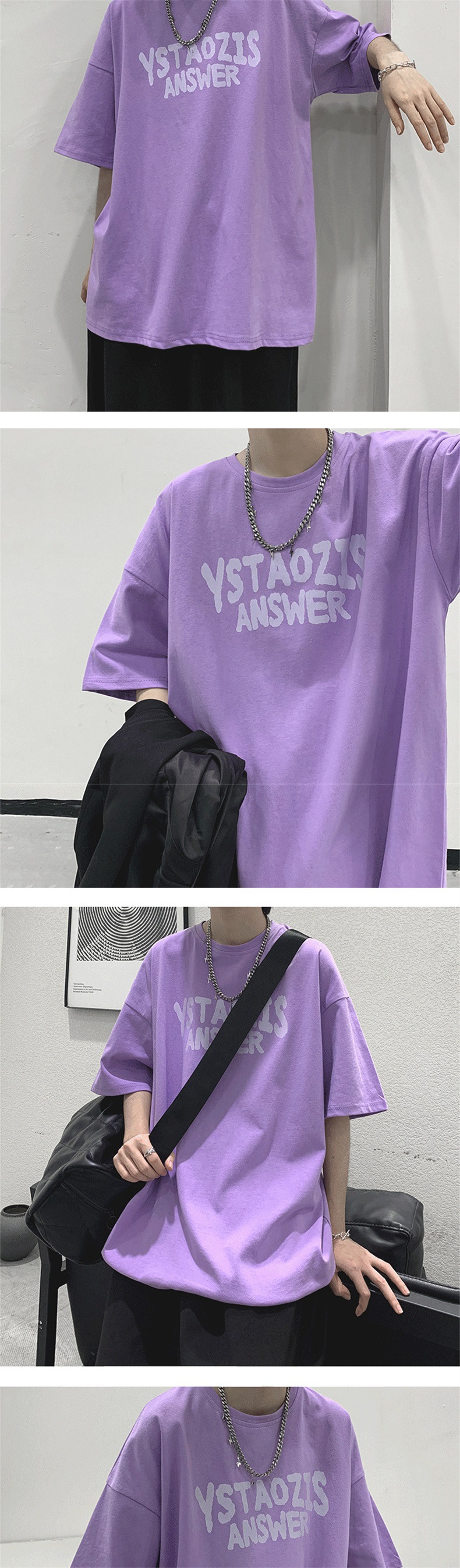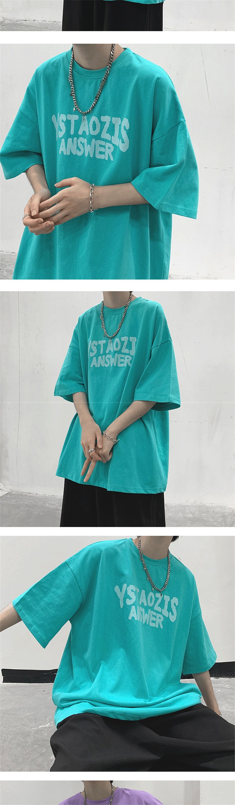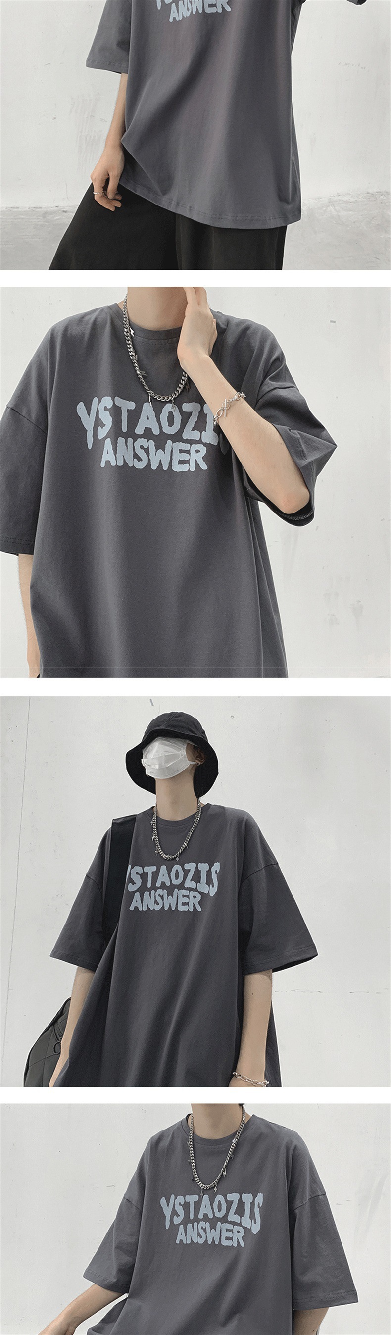 티셔츠 남성 여름 트렌디 커플 착용 5부소매 티셔츠 시크 레트로 홍콩 스타일 다용도 반팔 화이트 반소매 탑