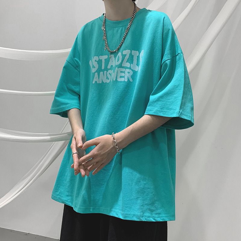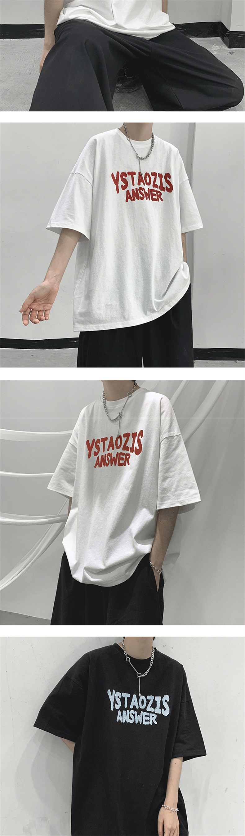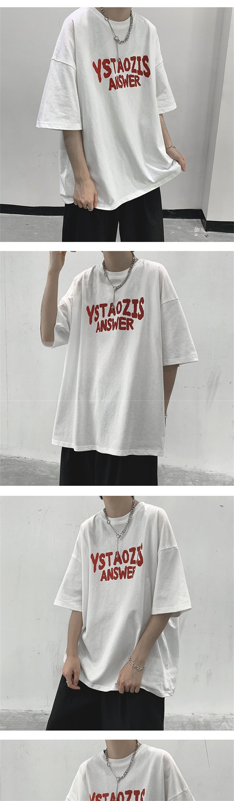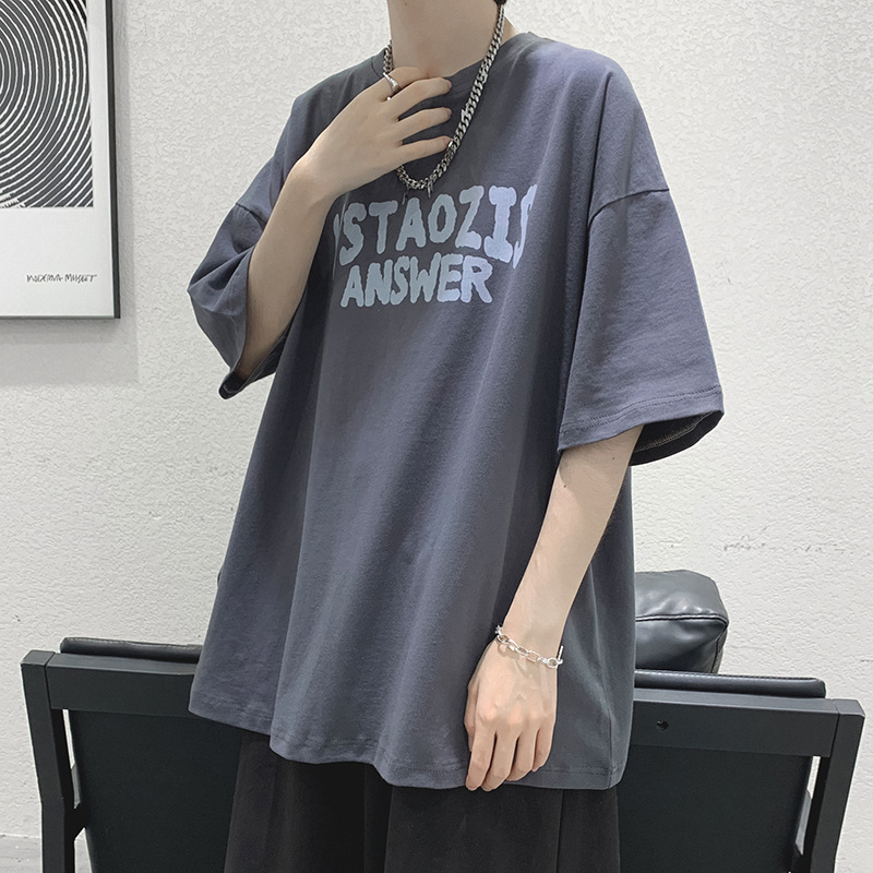 티셔츠 남성 여름 트렌디 커플 착용 5부소매 티셔츠 시크 레트로 홍콩 스타일 다용도 반팔 화이트 반소매 탑스토어 가기