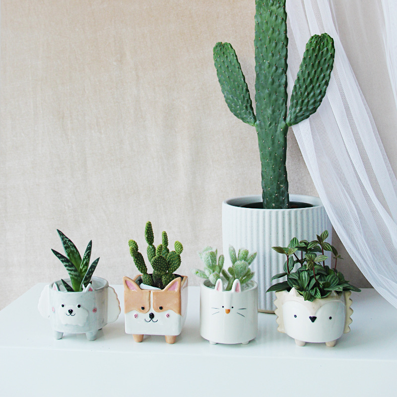 창의적인 다육식물 세라믹 화분 귀여운 동물 화분 선인장 다육식물 화분 책상 발코니 장식 녹색 식물스토어 가기