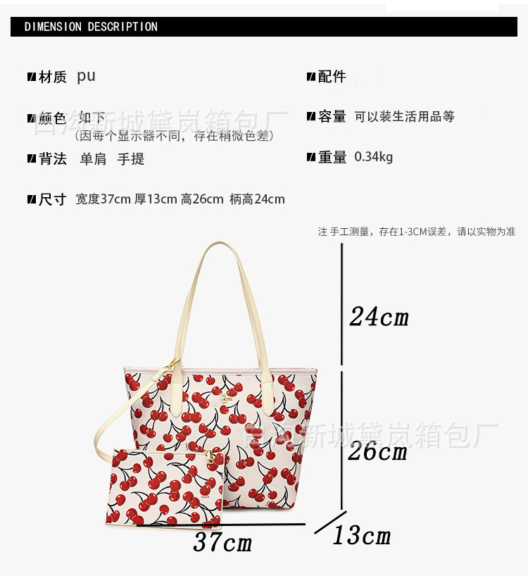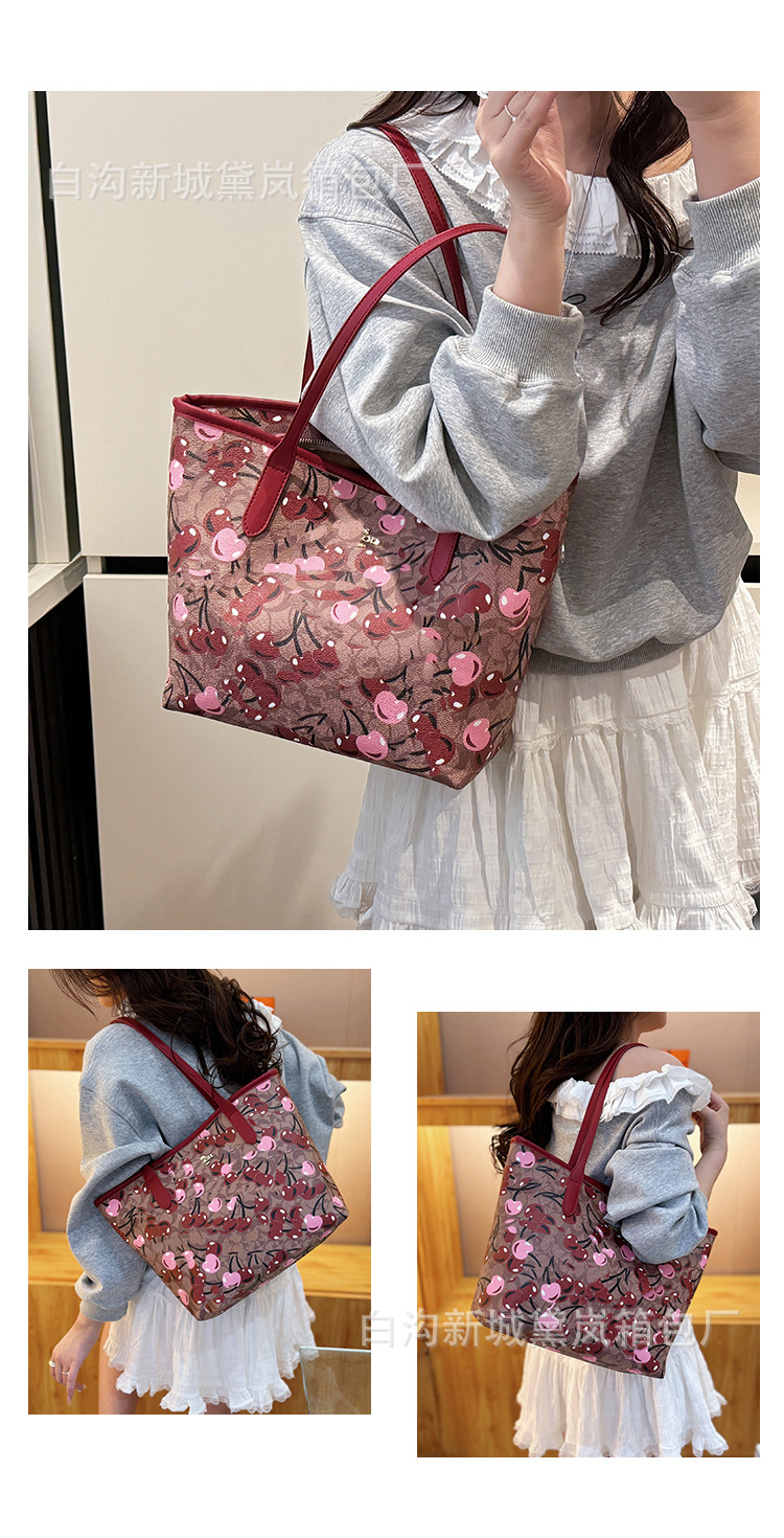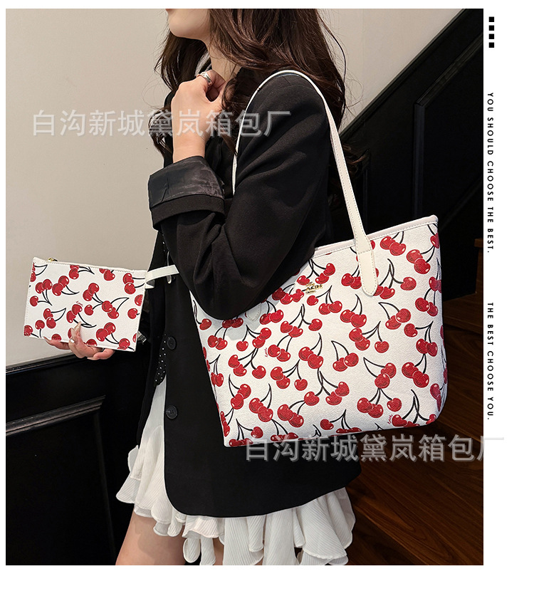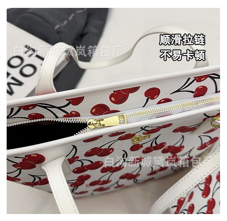 2025 패션 새로운 통근 체리 토트 백 캐주얼 핸드백 틈새 디자인 인쇄 하이 엔드 어깨 가방스토어 가기