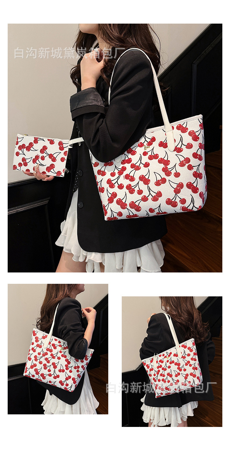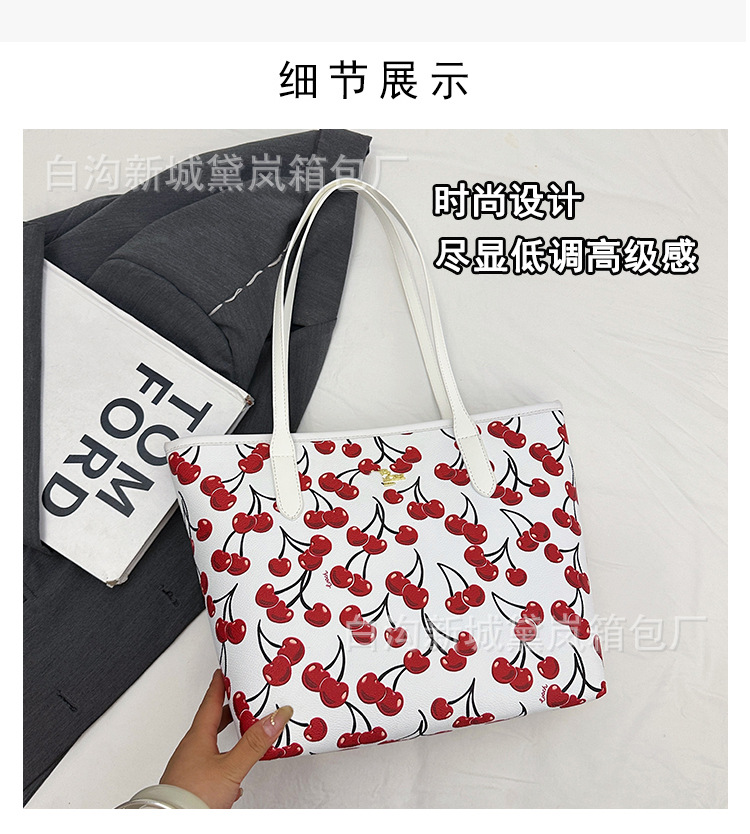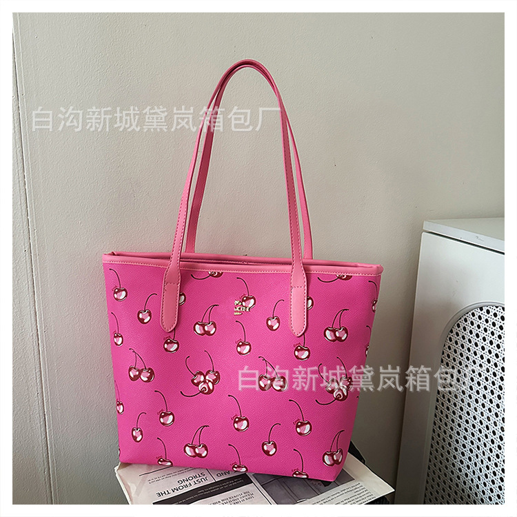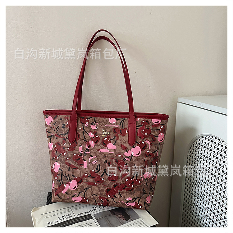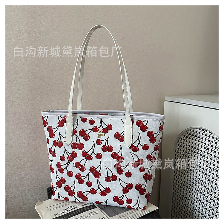2025 패션 새로운 통근 체리 토트 백 캐주얼 핸드백 틈새 디자인 인쇄 하이 엔드 어깨 가방