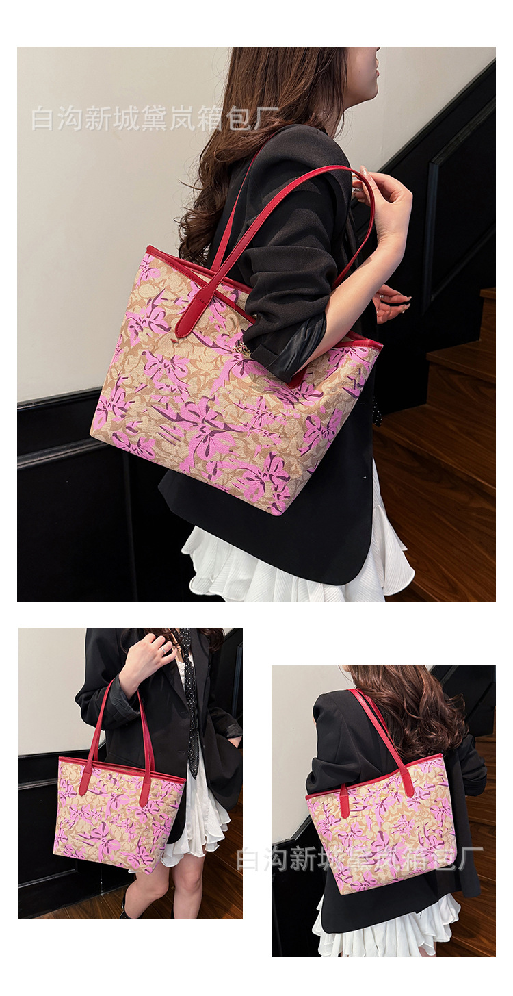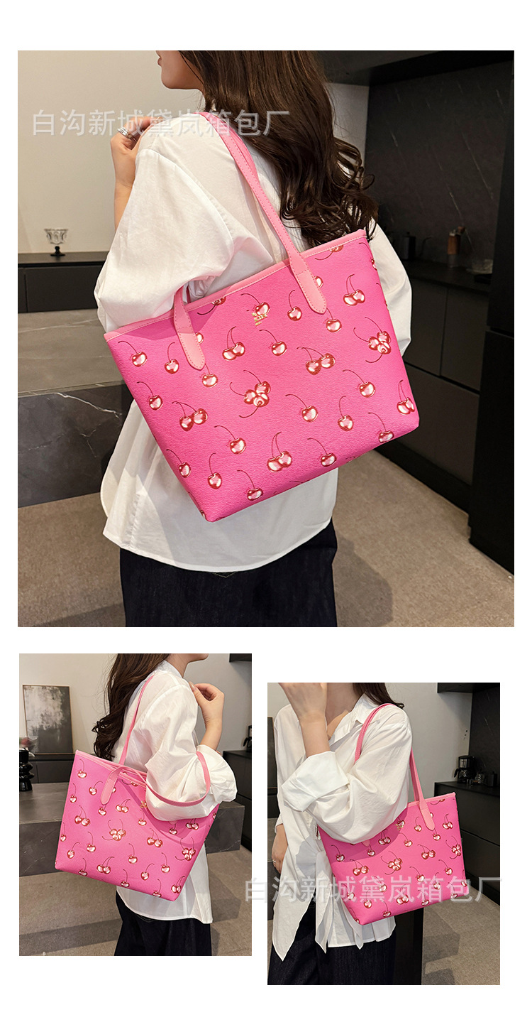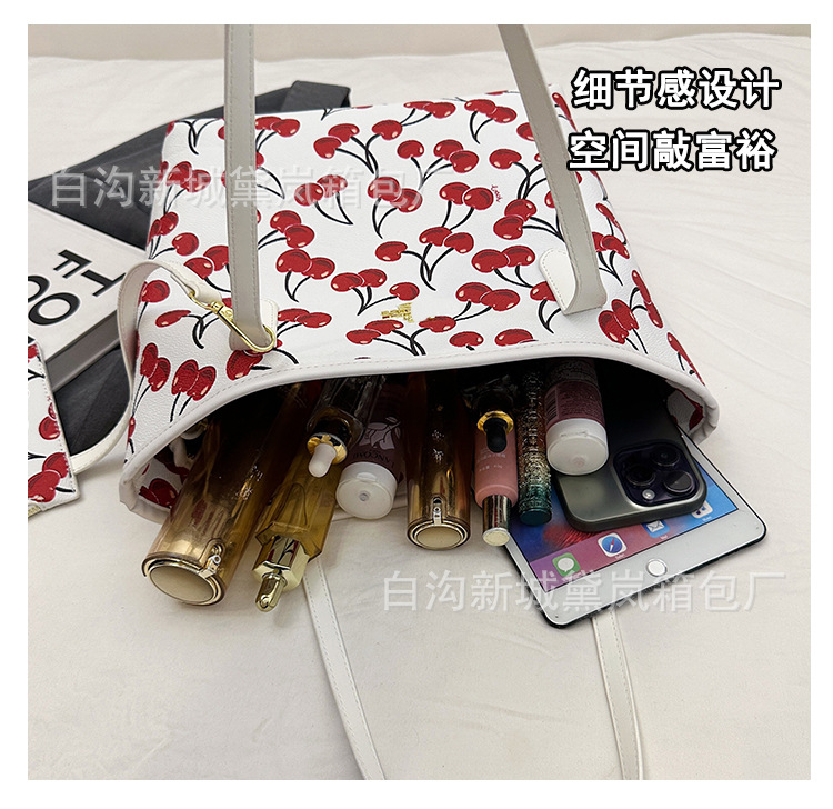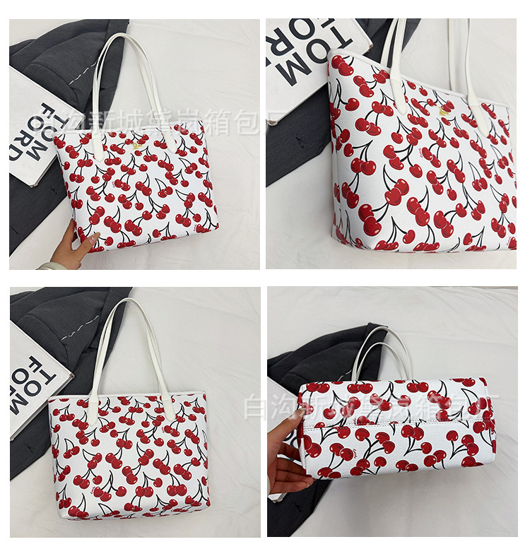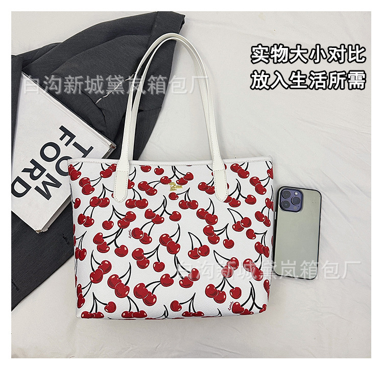 2025 패션 새로운 통근 체리 토트 백 캐주얼 핸드백 틈새 디자인 인쇄 하이 엔드 어깨 가방