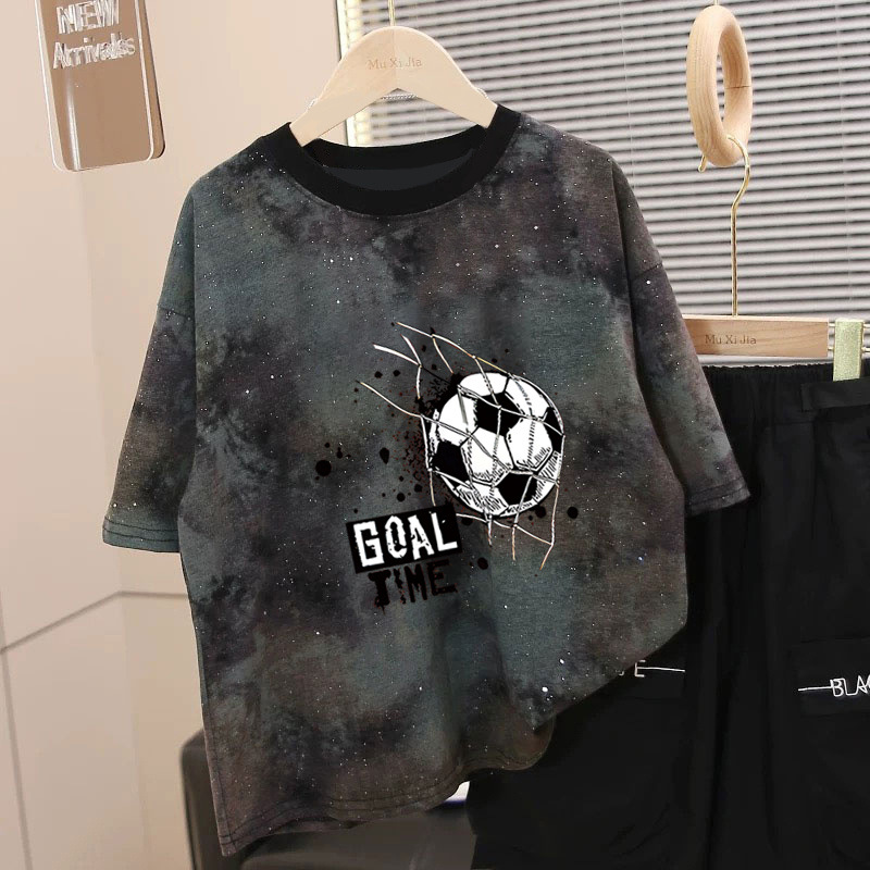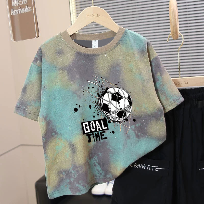 소년 반팔 티셔츠 타이 염색 아동복 2025 새로운 여름 느슨한 반팔 중대형 어린이 잘 생긴 소년상의스토어 가기