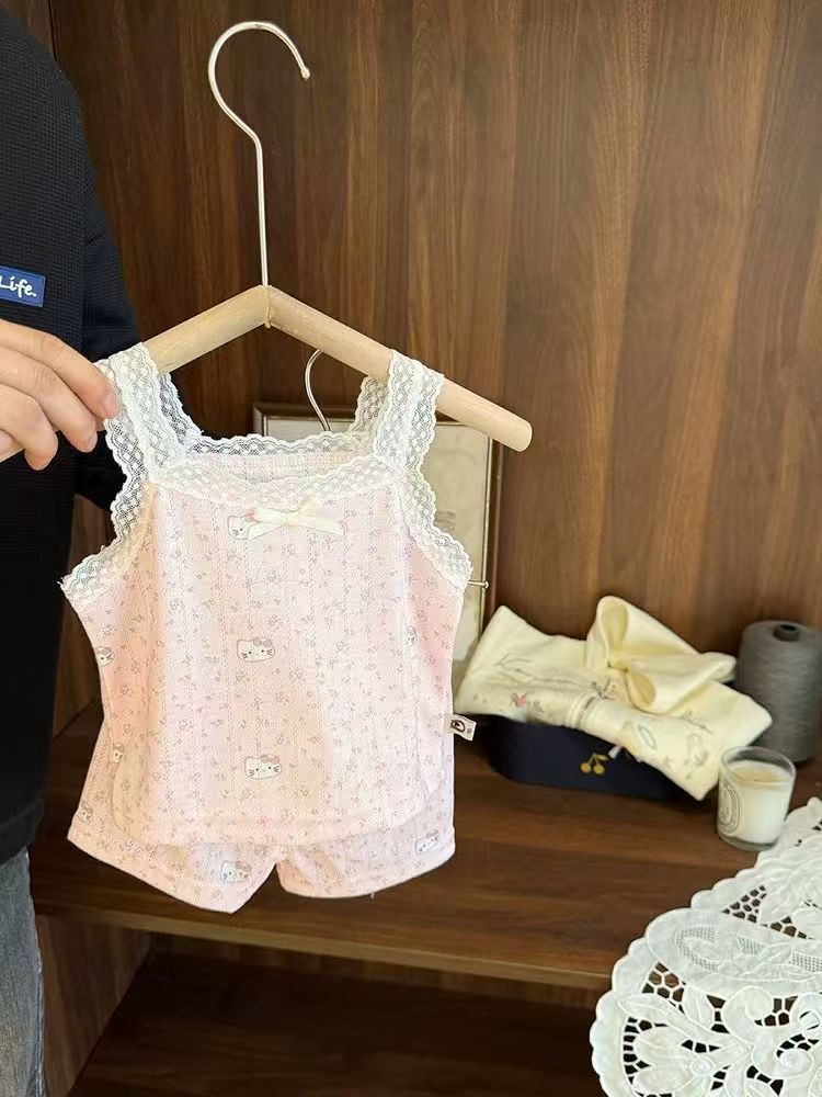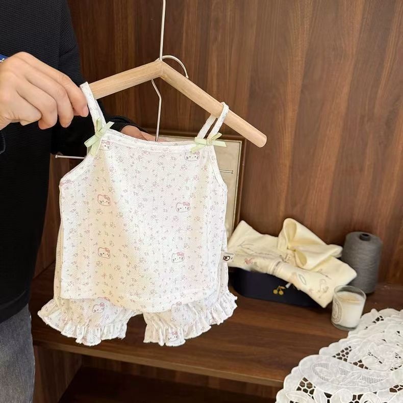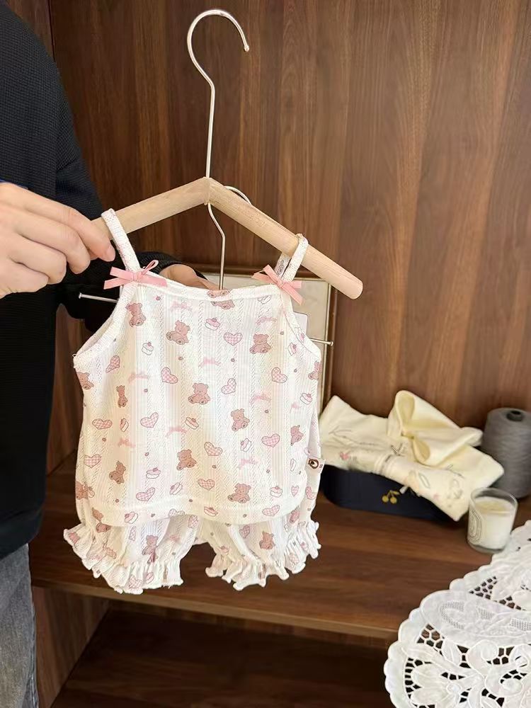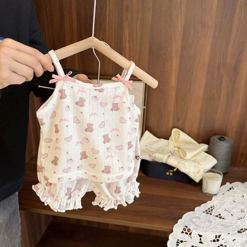 아기 소녀 통기성 얇은 가정 의류 세트 아기 소녀 여름 겉옷 소녀 캐미솔 반바지 투피스 세트스토어 가기