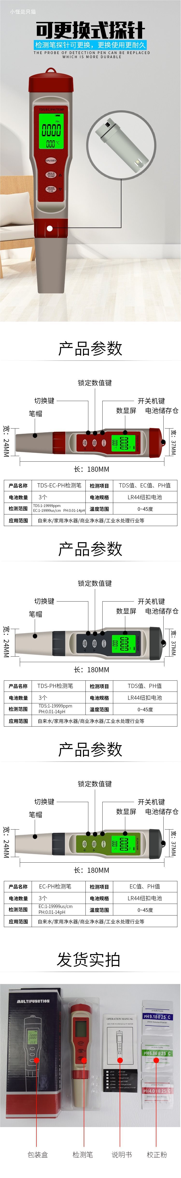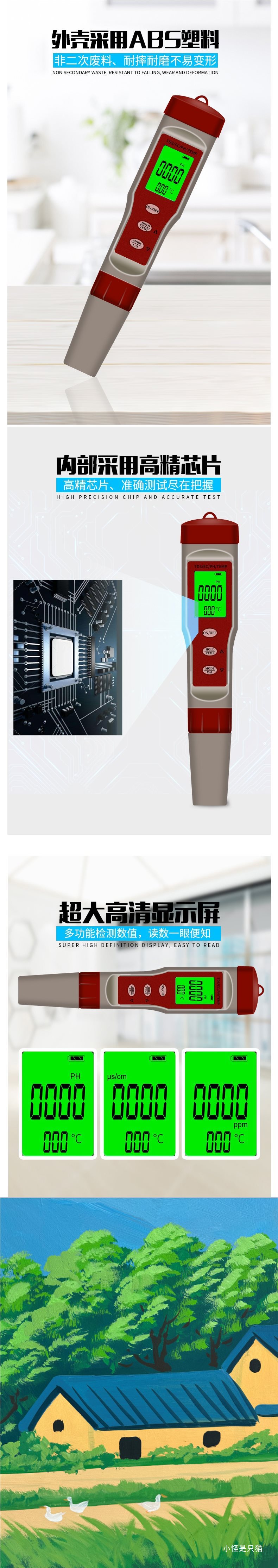 다기능 수질 테스트 펜 PH 펜 산도 측정기 TDS 전도도 테스터 온도 염분 수조 테스트스토어 가기