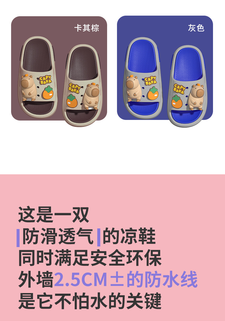 Kapibala 어린이 슬리퍼 소녀 여름 2025 새로운 실내 소년 슬리퍼 귀여운 미끄럼 방지 부드러운 바닥 샌들