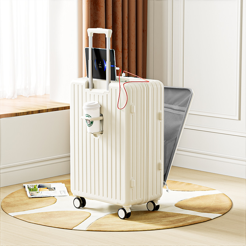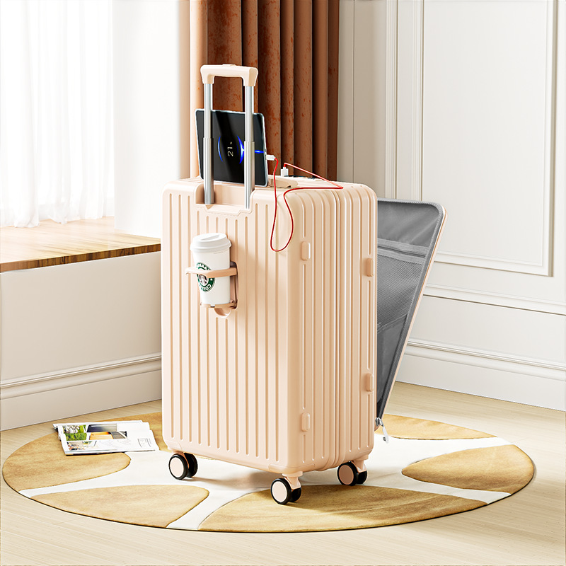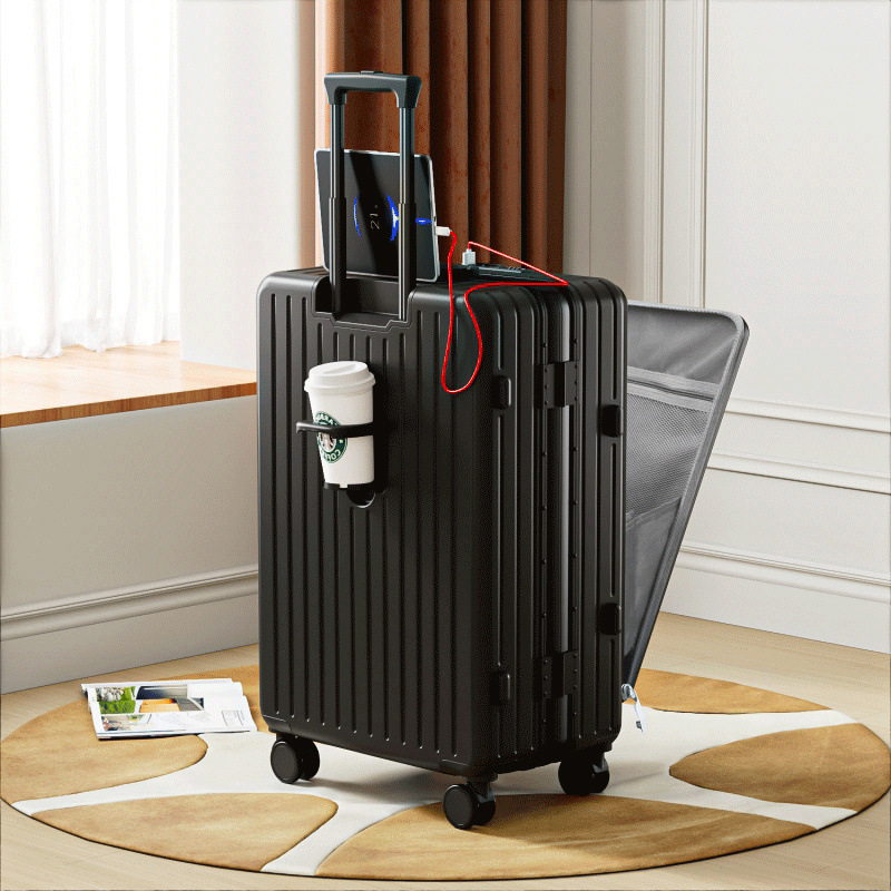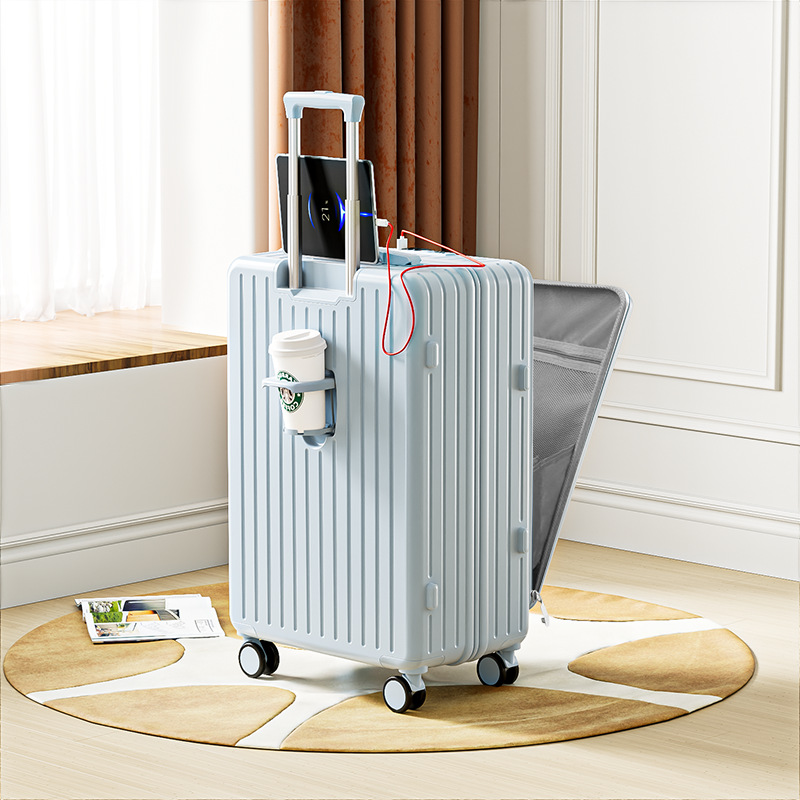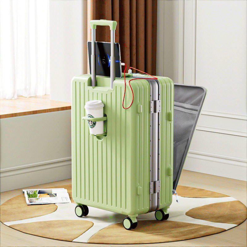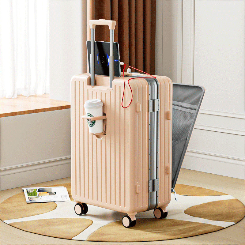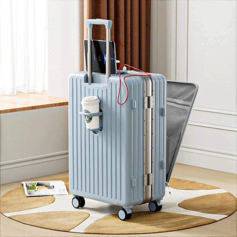 2023 새로운 전면 오픈 커버 가방 알루미늄 프레임 강력하고 내구성이 뛰어난 트롤리 케이스 여성용 다기능 20inch 탑승 코드 박스