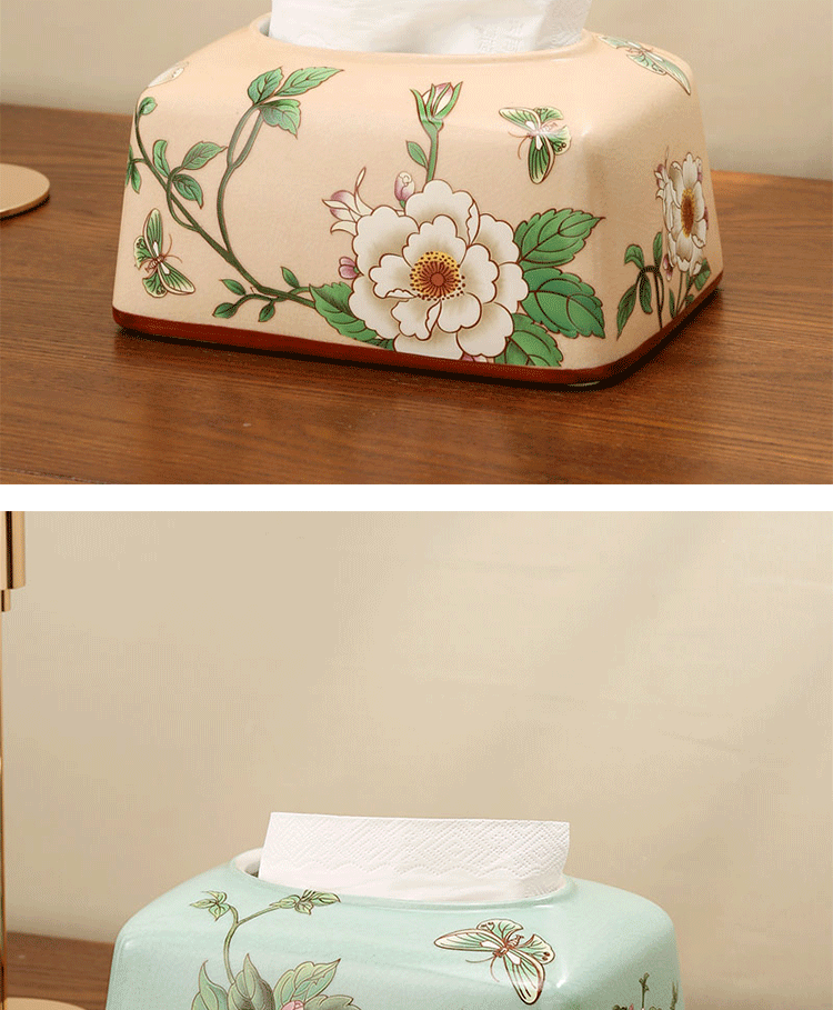 미국 세라믹 가정용 티슈 상자, 유럽 스타일의 가벼운 고급 보관함, 북유럽 장식 종이 티슈 상자, 새로운 중국 스타일의 티슈 상자 장식품
