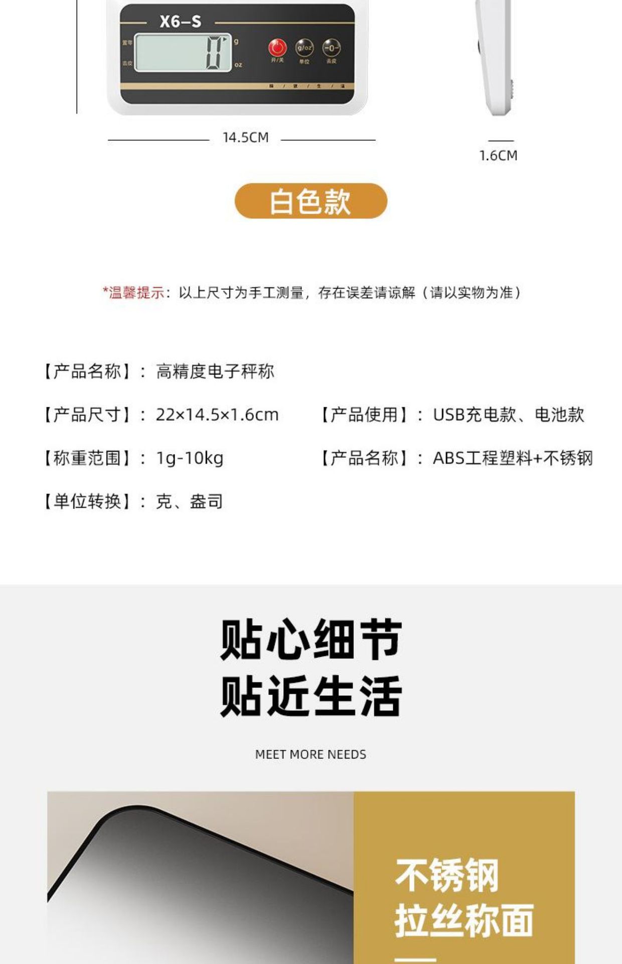 • 스테인레스 스틸 스케일 표면 충전 모델 10KG/1G [백라이트 포함, 무료 선물 패키지]