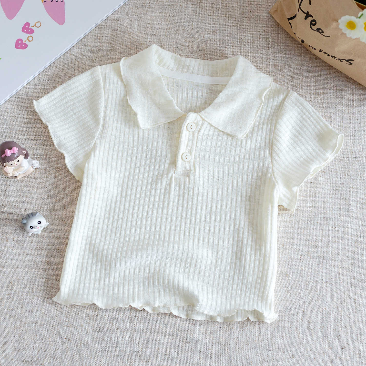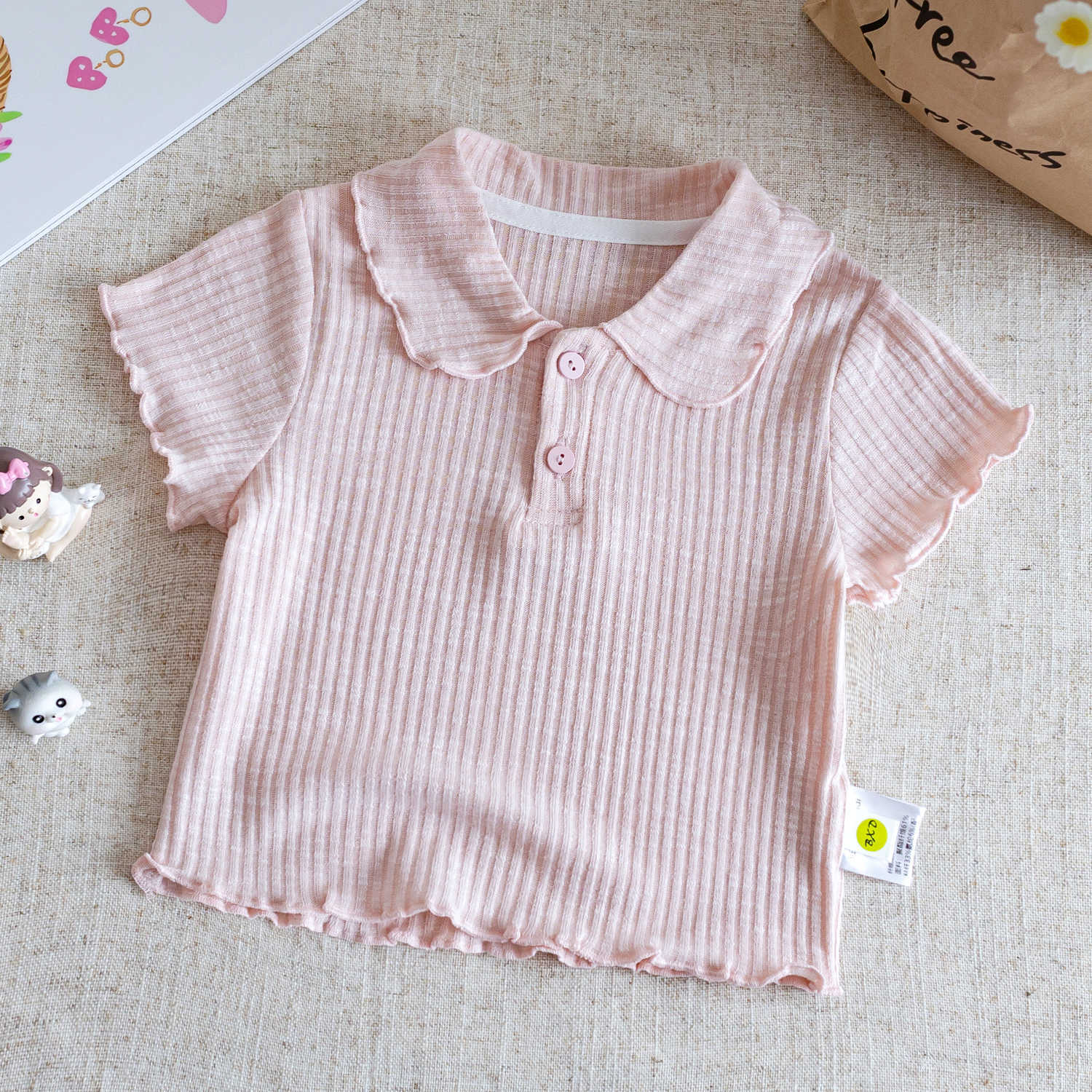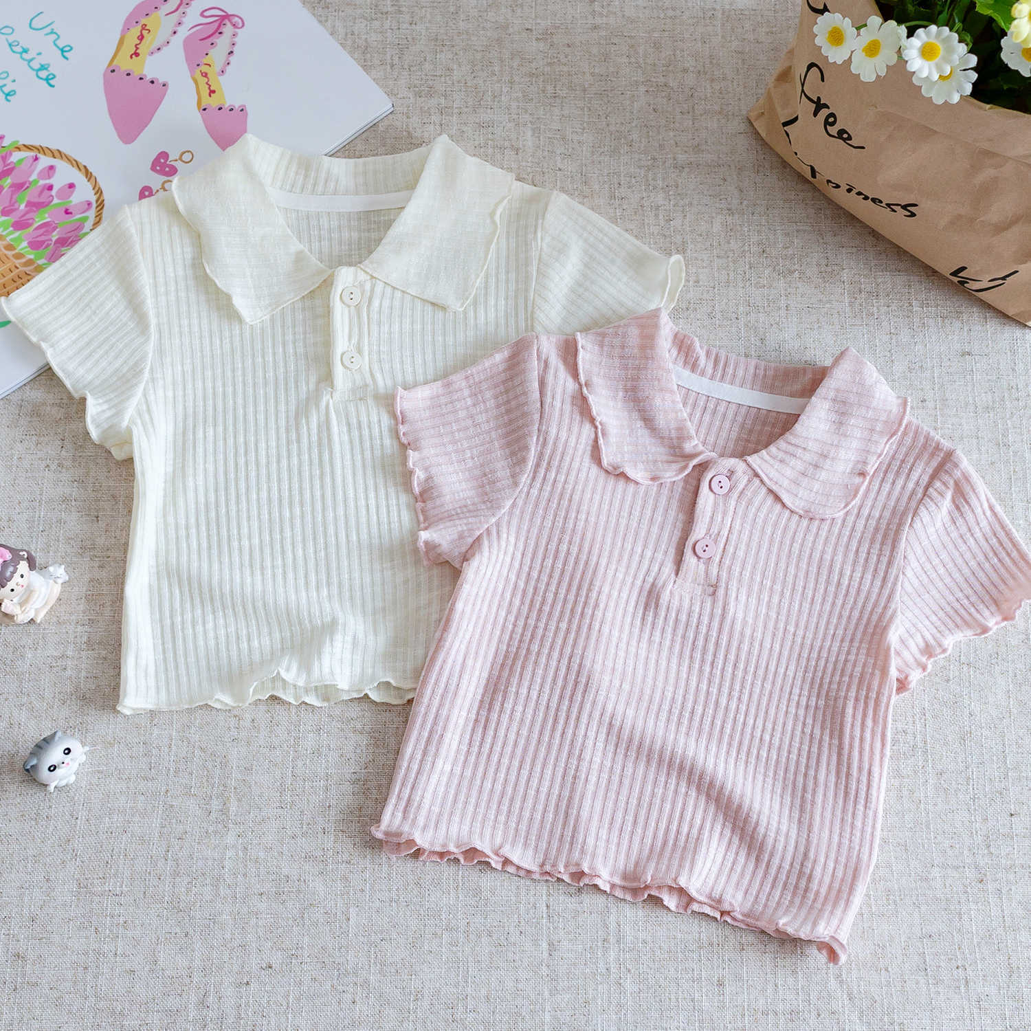 여자 반팔 티셔츠 2025 새로운 여름 어린이 한국 스타일 달콤한 인형 칼라 탑 아기 소녀 유행 바닥