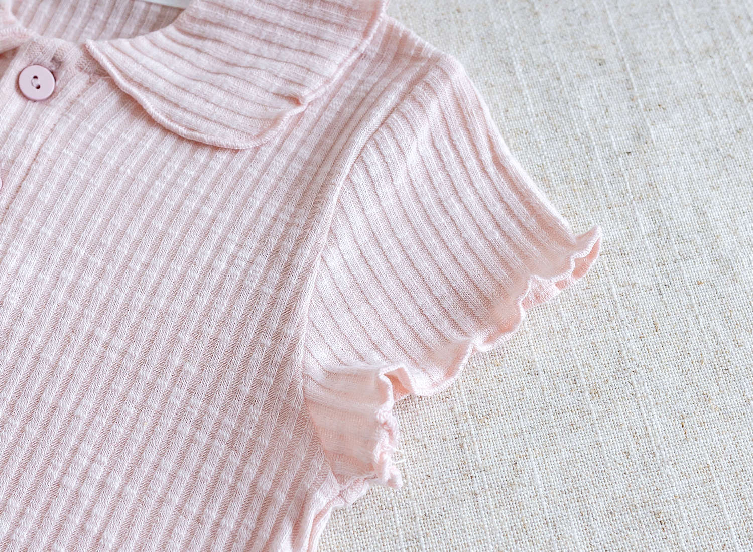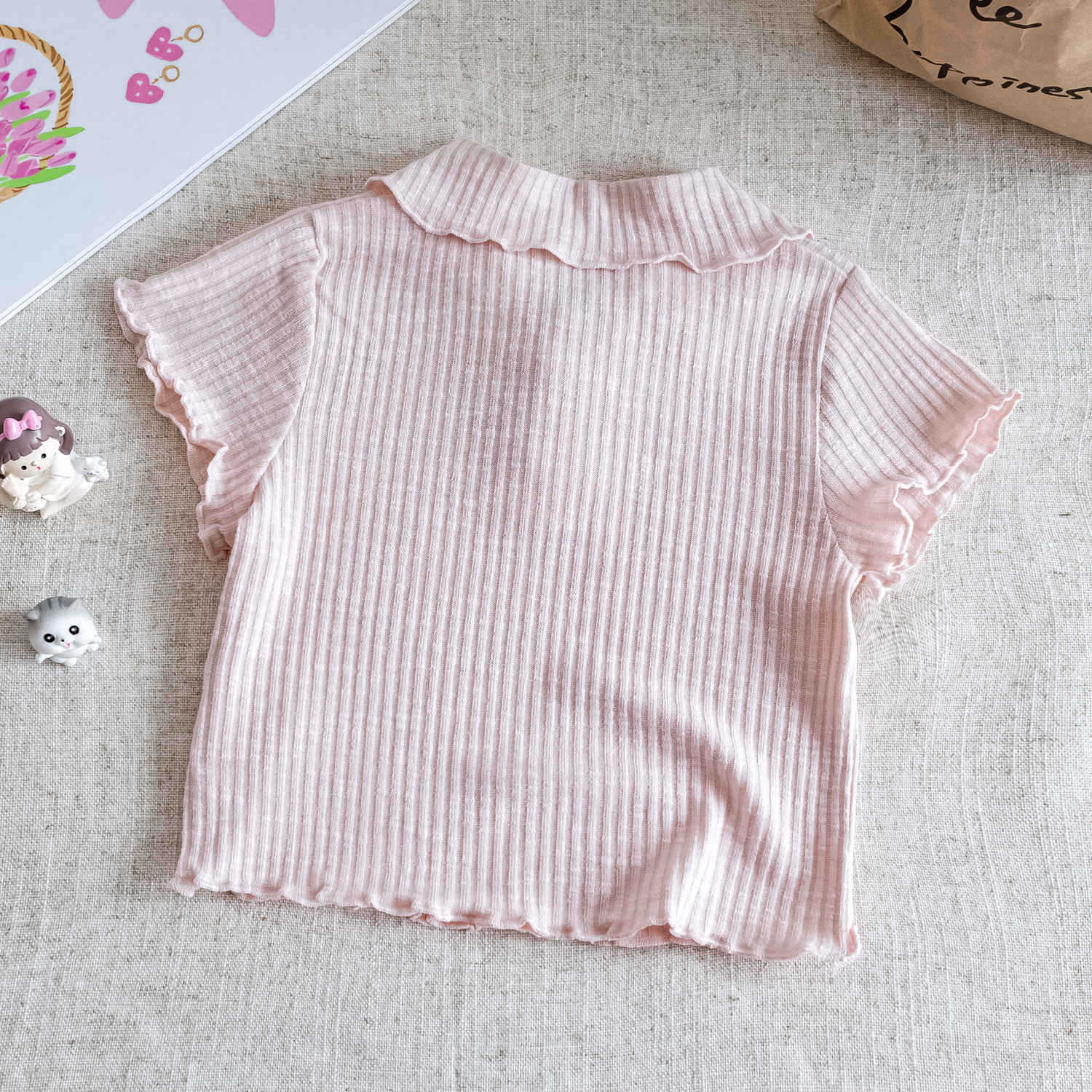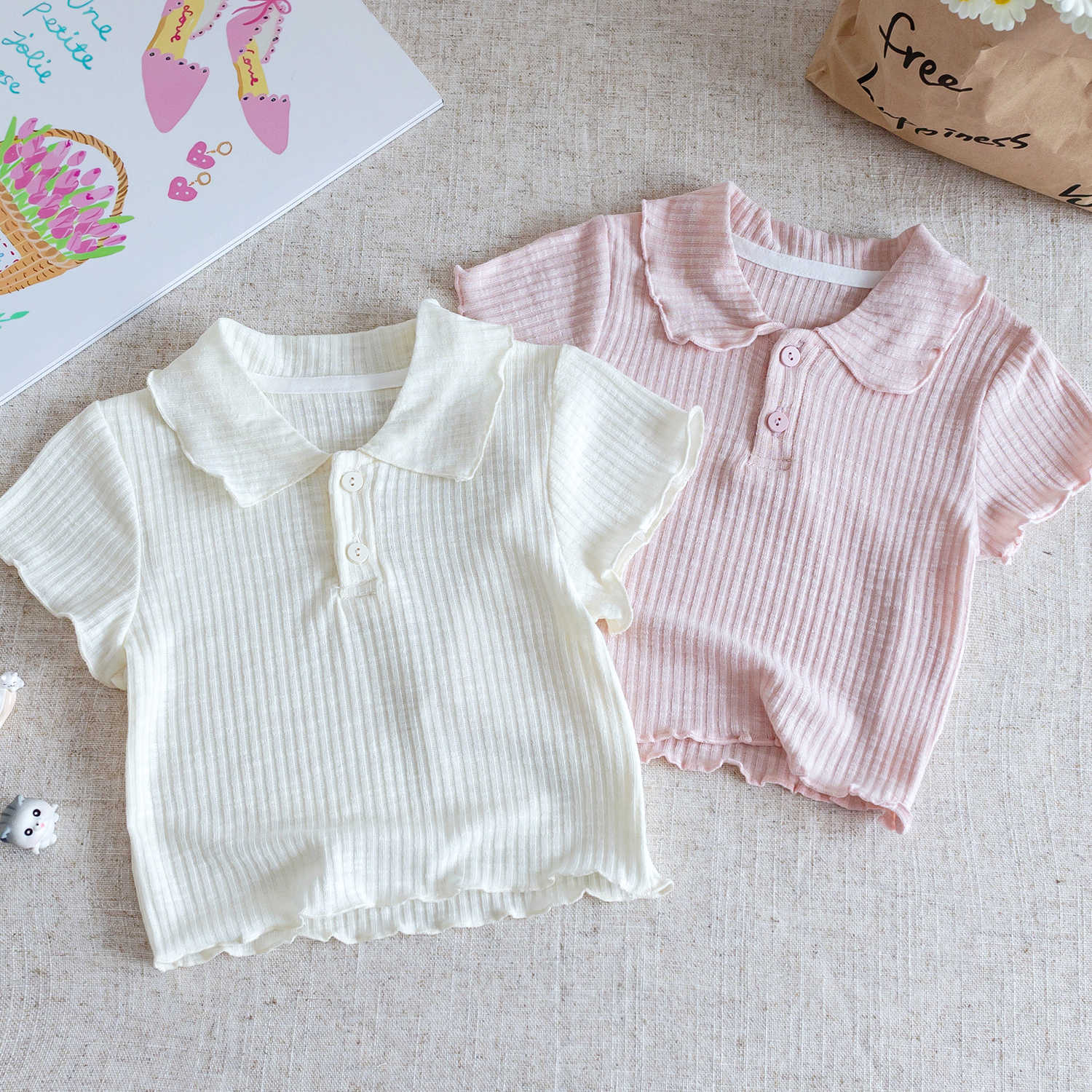 여자 반팔 티셔츠 2025 새로운 여름 어린이 한국 스타일 달콤한 인형 칼라 탑 아기 소녀 유행 바닥