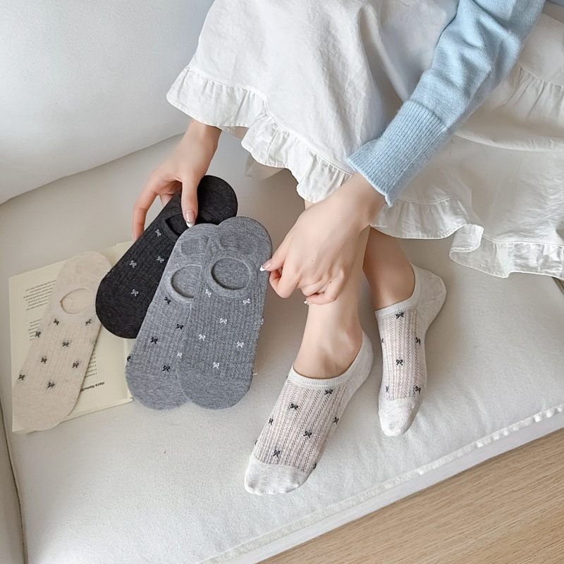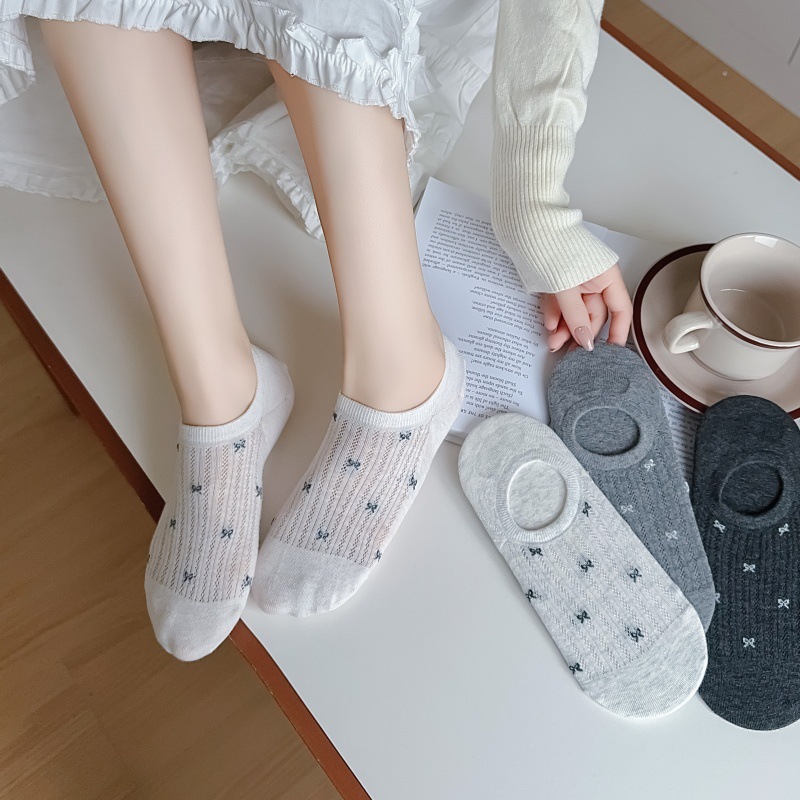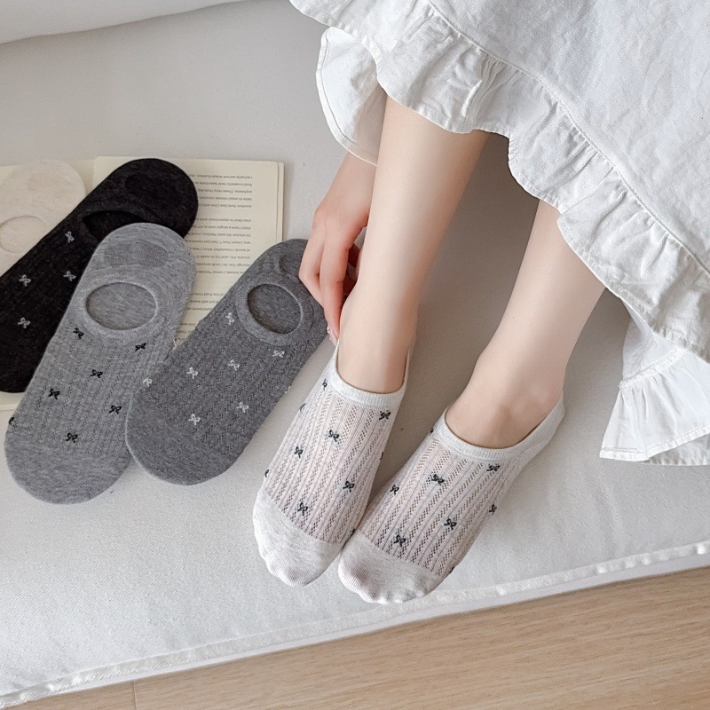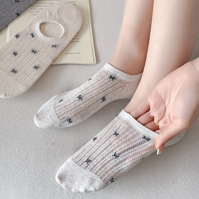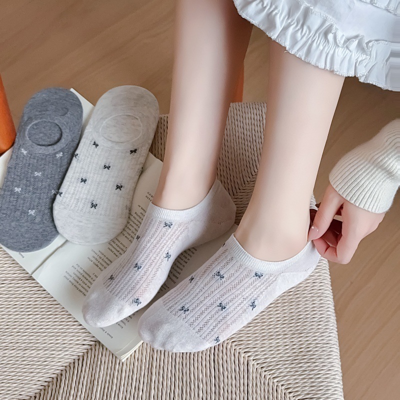 여성용 무봉제 보트 양말, 여름용 얇은 양말, 속이 빈 메쉬 얕은 입 보이지 않는 양말, 미끄럼 방지 및 떨어지지 않는 양말