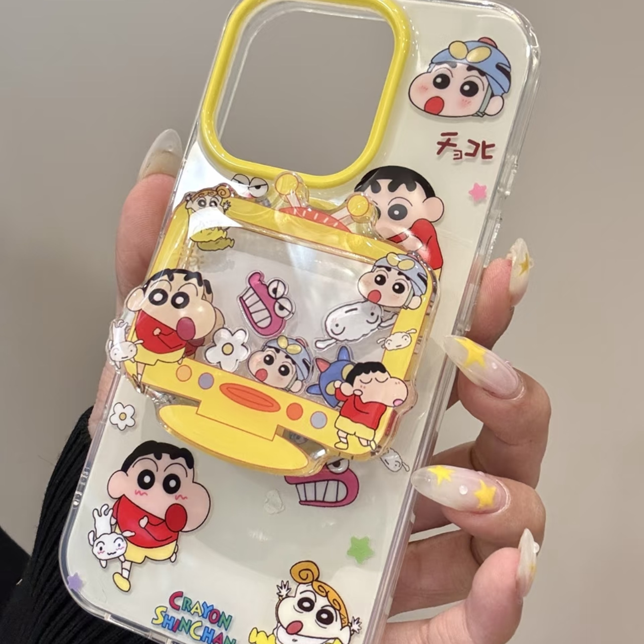 귀여운 가장자리 크레용 작은 새로운 게임 기계 로킹 스탠드 iphone16pr 애플 휴대 전화 보호 케이스 새로운스토어 가기