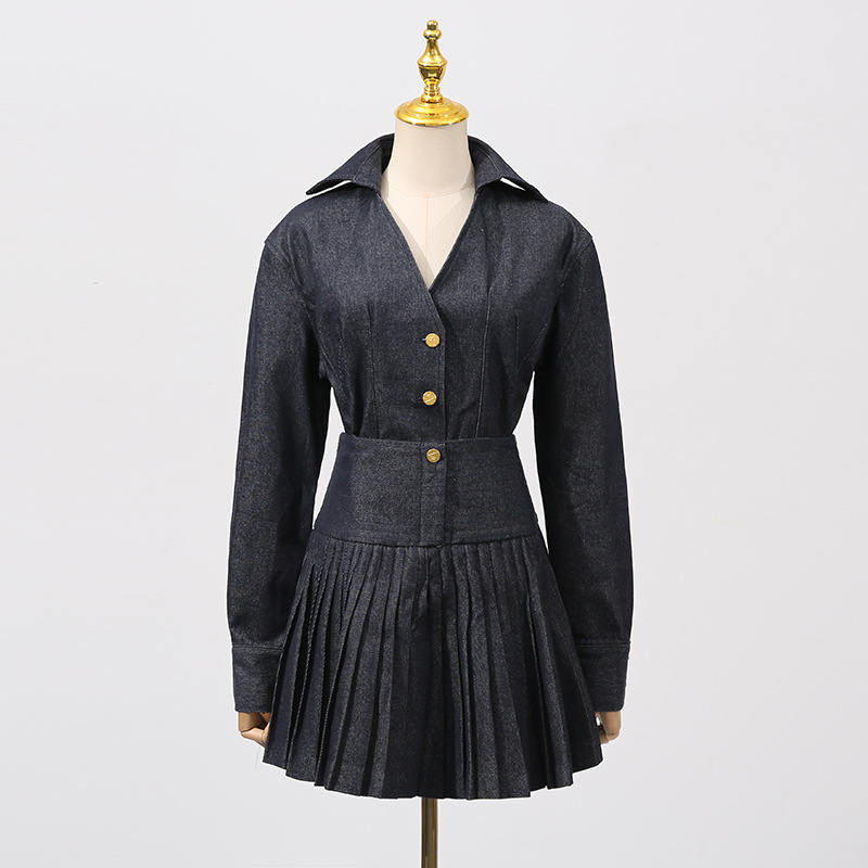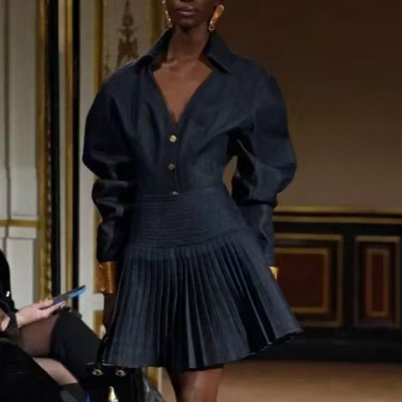 호주 스타일 여성 여름 투피스 세트 2026 신상 싱글버튼 탑+하이웨이스트 플리츠 스커트스토어 가기