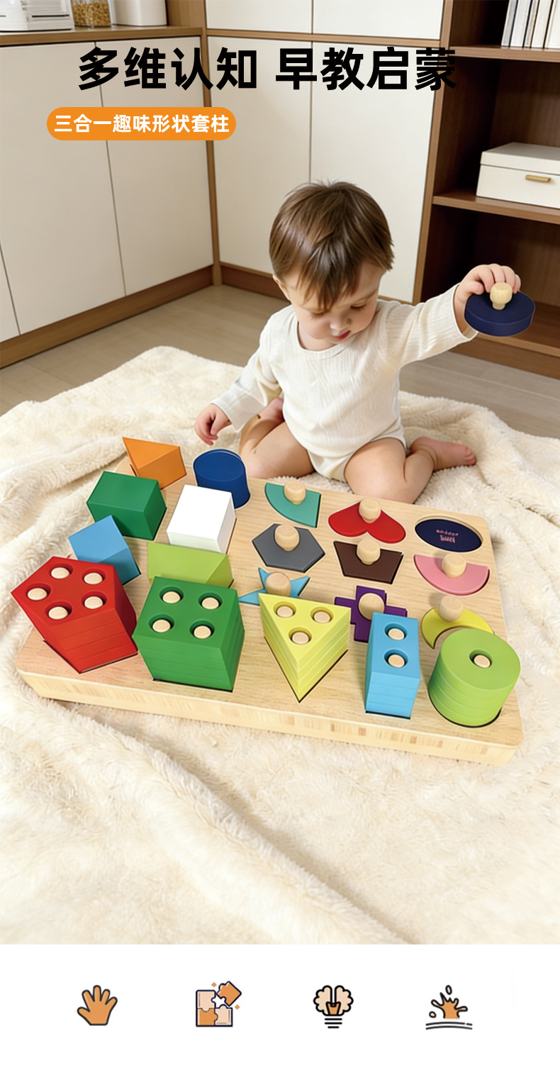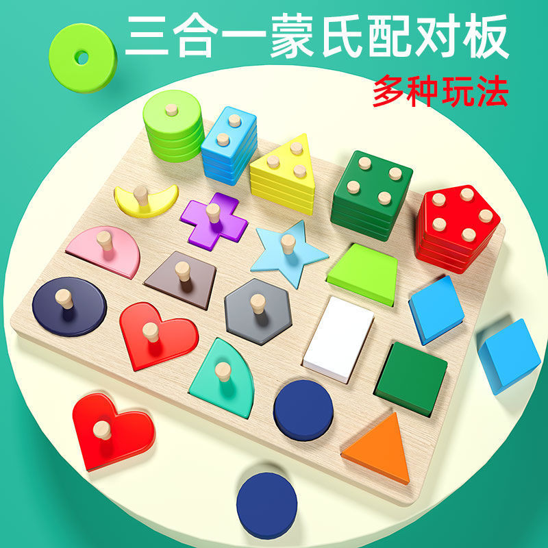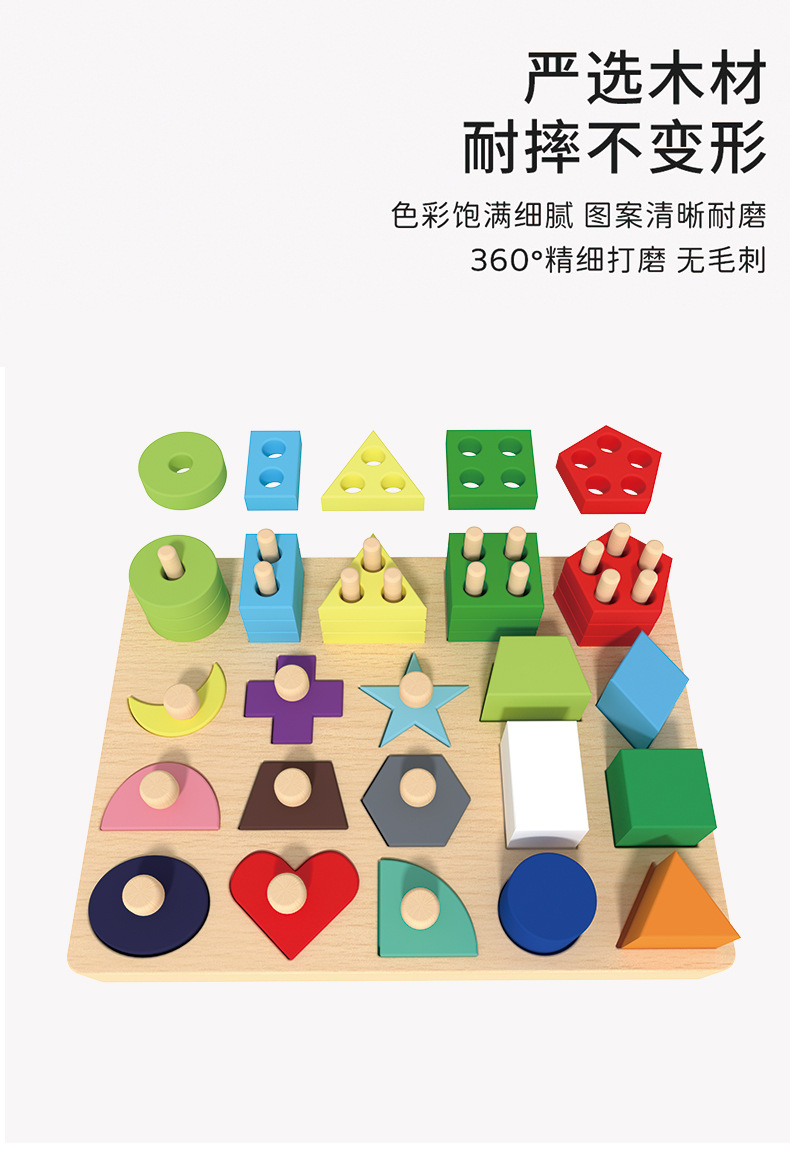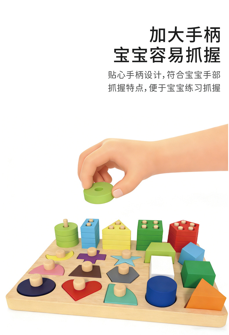 몬테소리 조기 교육 기하학적 모양 세트 기둥 일치하는 빌딩 블록 유아 아기 1-3 세 교육 핸드 그랩 보드 조립 장난감스토어 가기