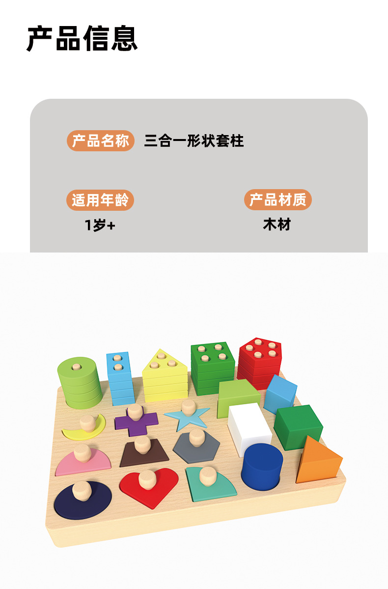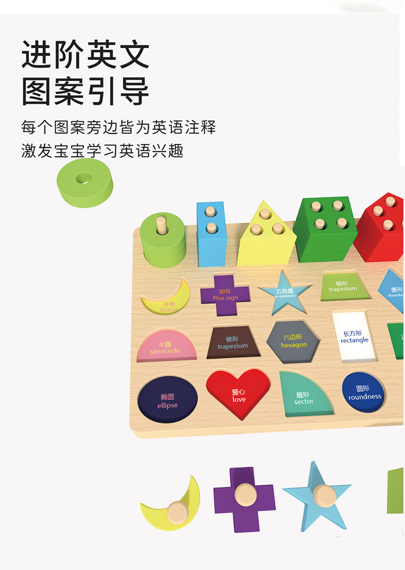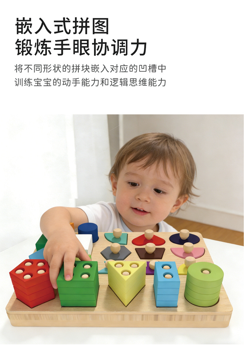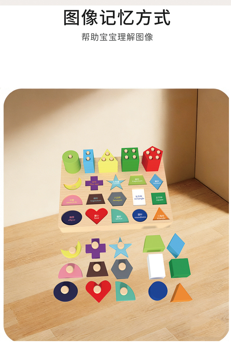 몬테소리 조기 교육 기하학적 모양 세트 기둥 일치하는 빌딩 블록 유아 아기 1-3 세 교육 핸드 그랩 보드 조립 장난감스토어 가기