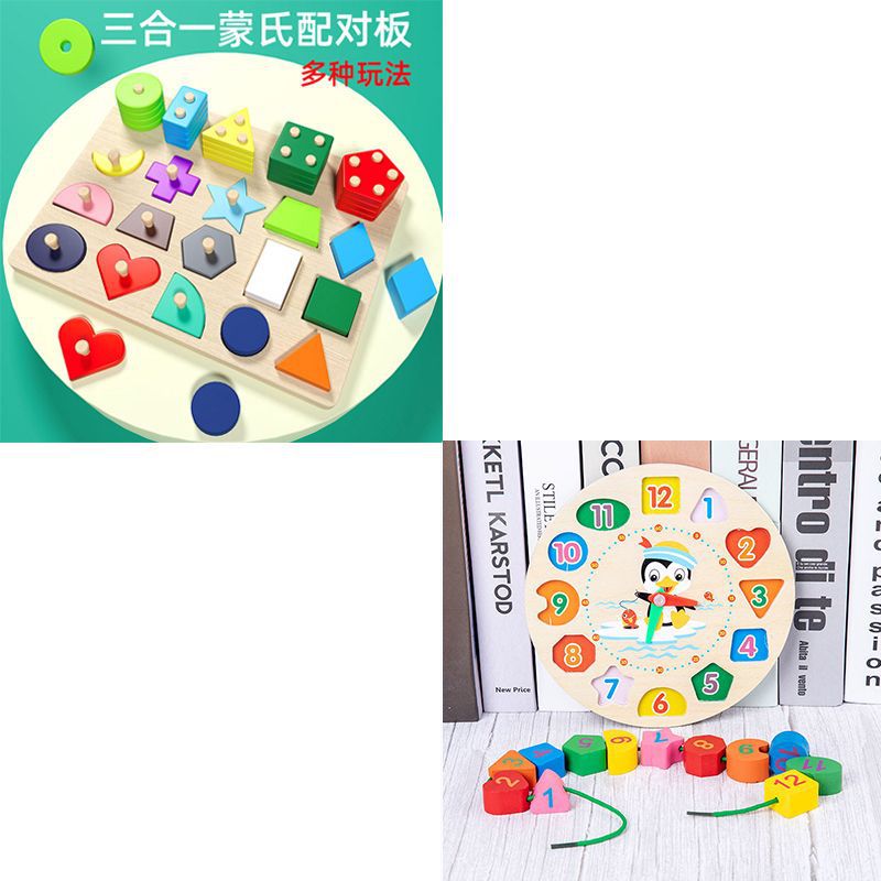 • 3-in-1 기하 도형 끼워 맞추기 & 손잡이 보드 + 구슬 시계