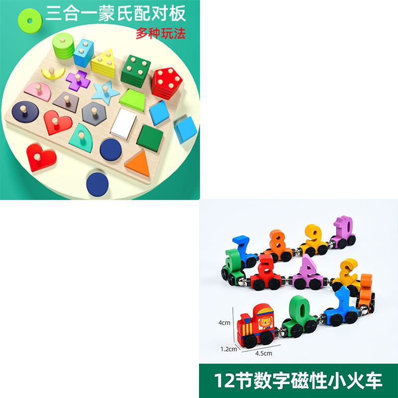 • 3-in-1 기하 도형 끼워 맞추기 & 자석 숫자 기차