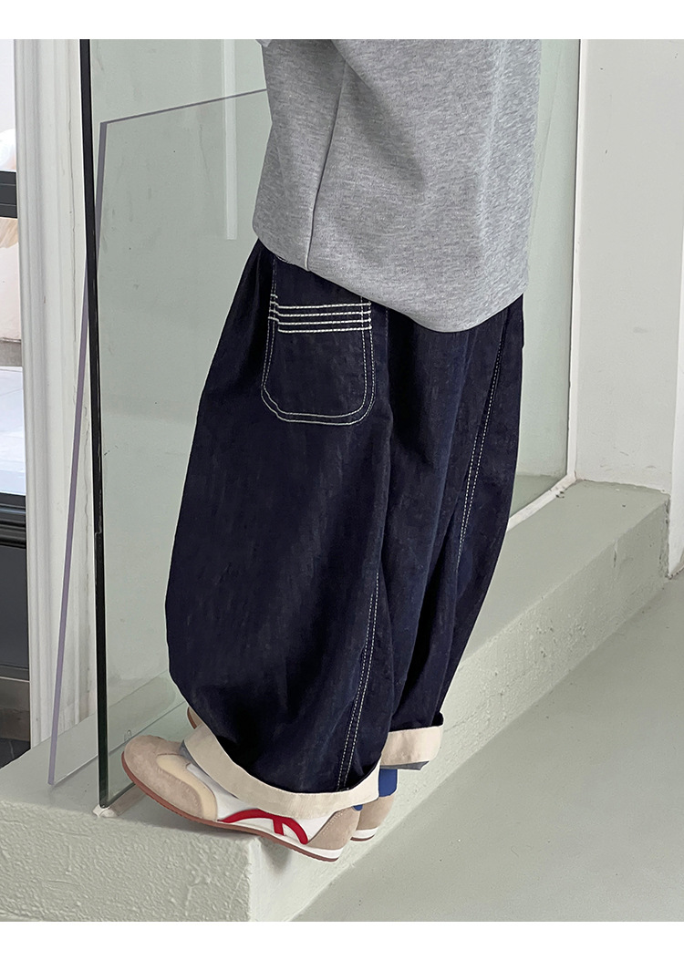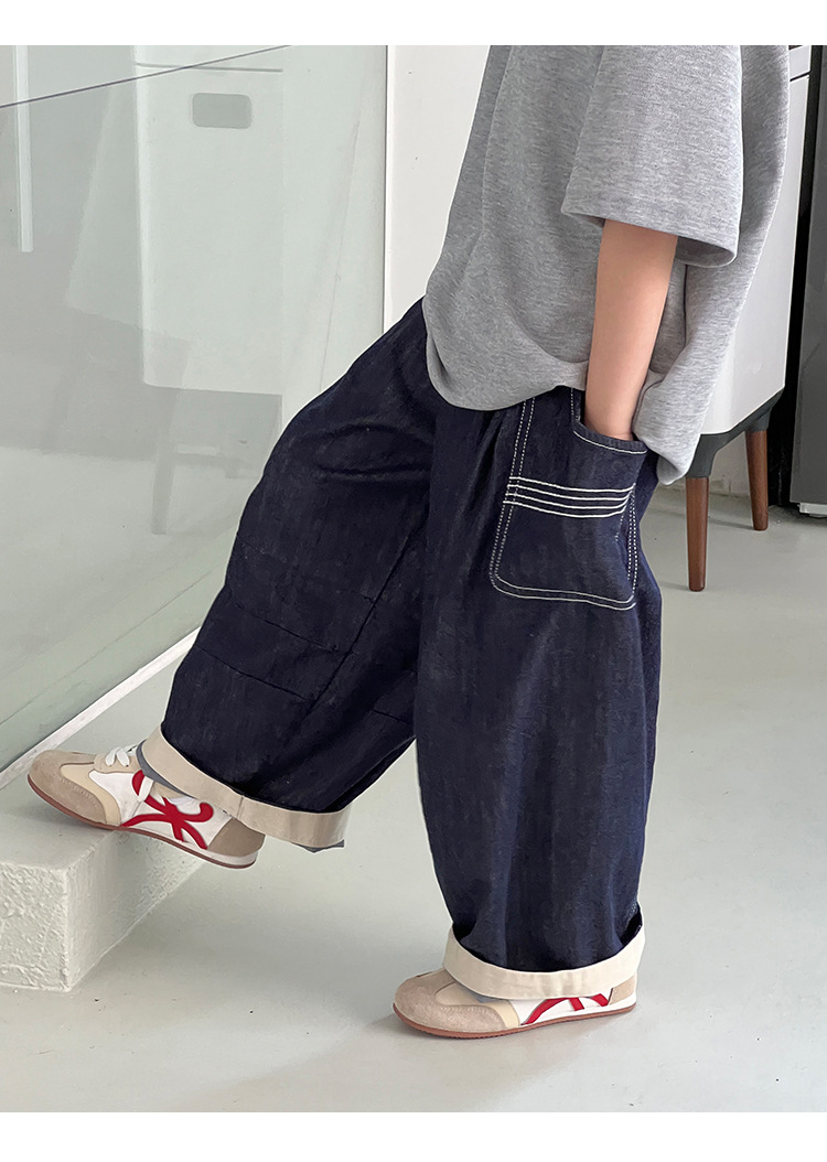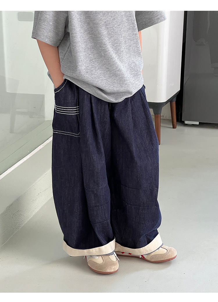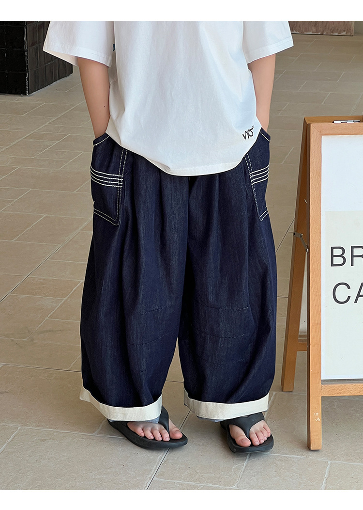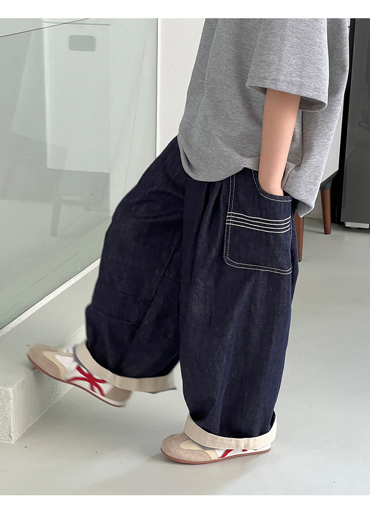 2025 여름 아동 한국 패션 캐주얼 심플 스타일 대비 컬러 탑스티치 다용도 데일리 청바지