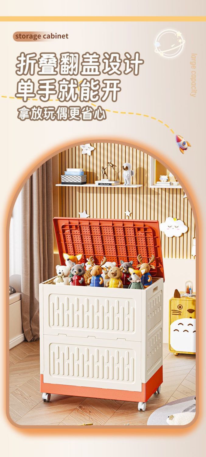 이동식 어린이 장난감 보관 상자 플립 커버 초대형 정리 도구 대용량 옷 이불 접이식 보관 상자
