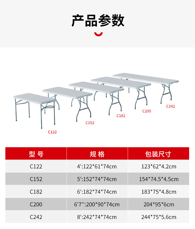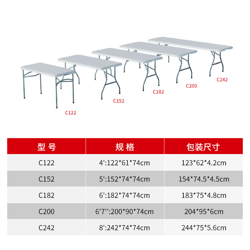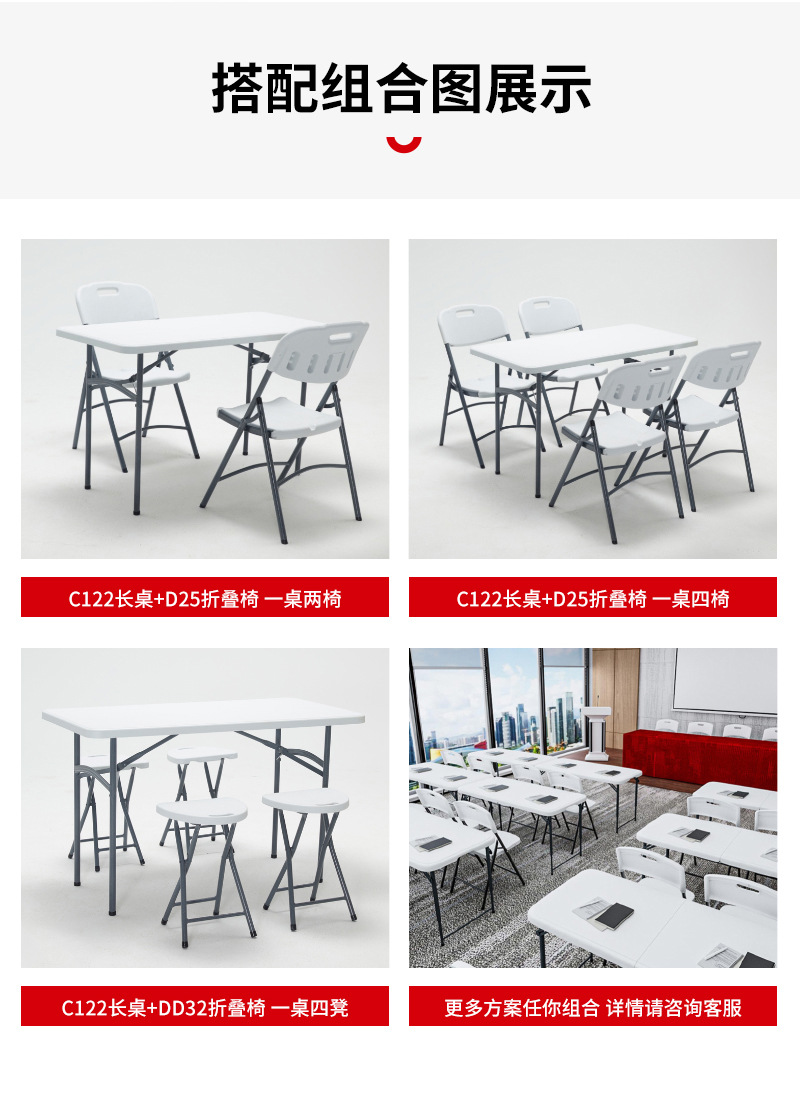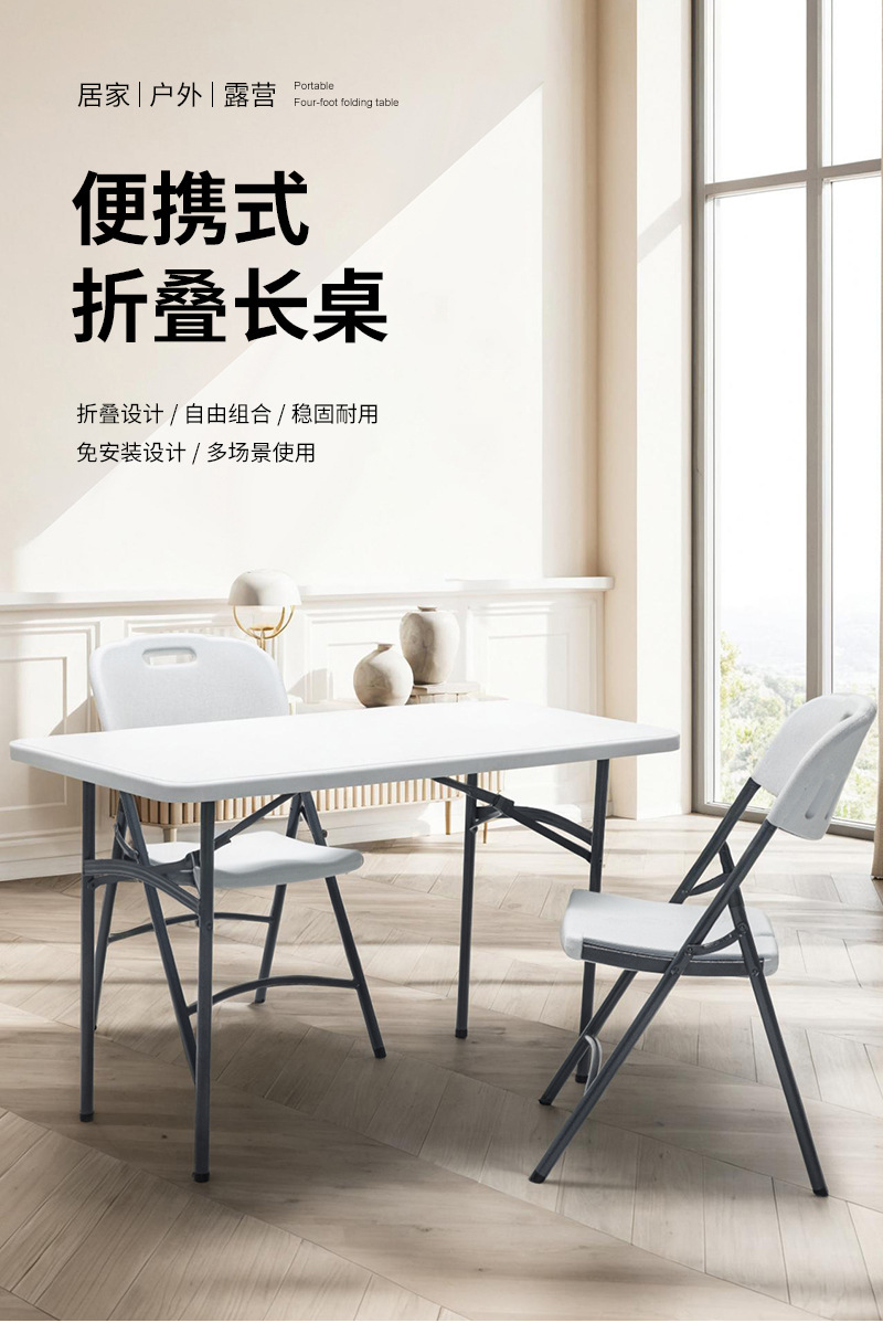소스 제조업체 휴대용 임대 주택 간단한 식탁 긴 테이블 접이식 흰색 122CM 블로운 성형 접이식 테이블