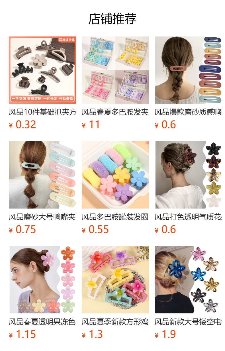 인기 있는 크로스보더 제품, 원잉 오리 클립, 뒷머리용 플랫 타원형 머리핀, 머리카락 길이가 긴 머리핀, 가로 머리핀스토어 가기