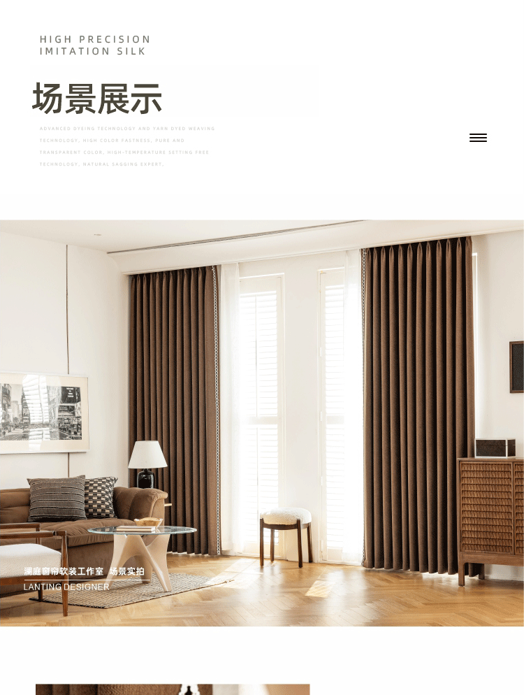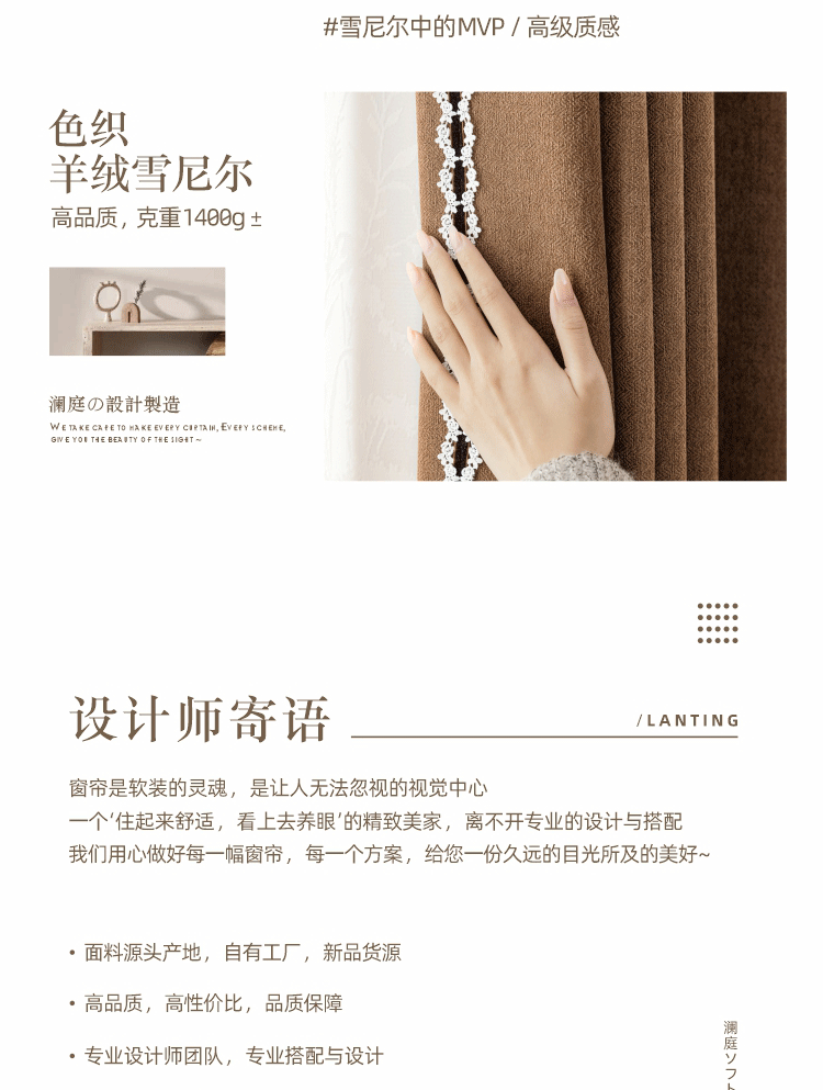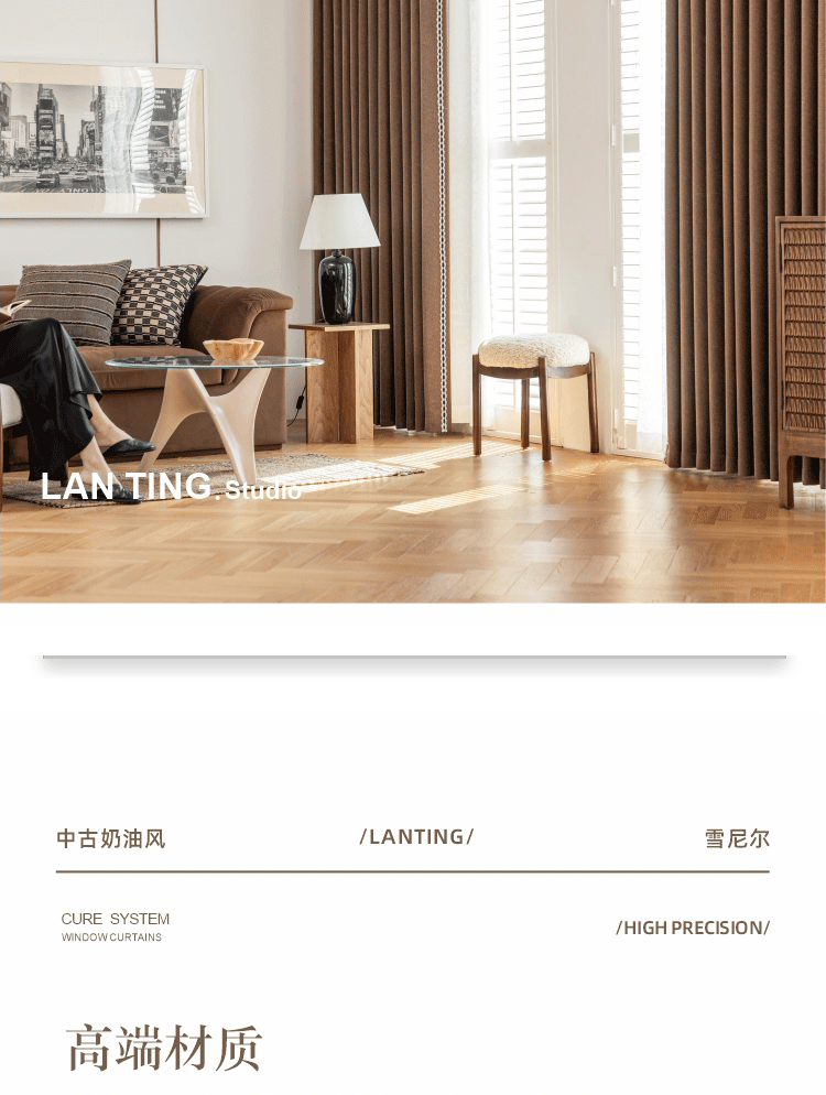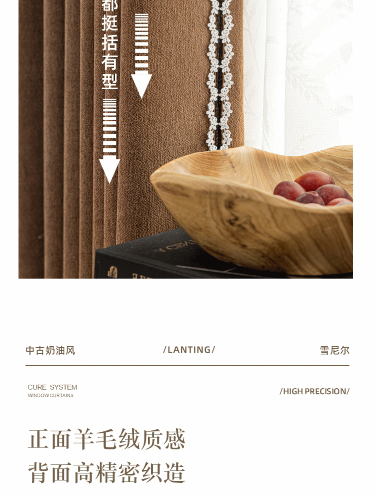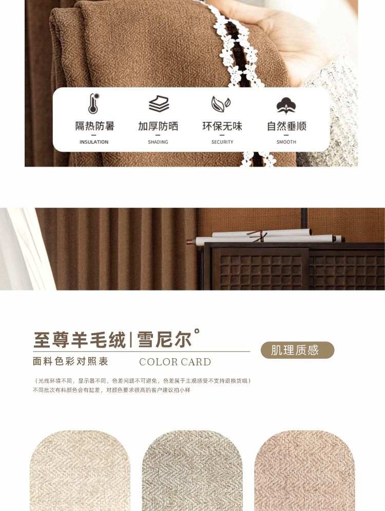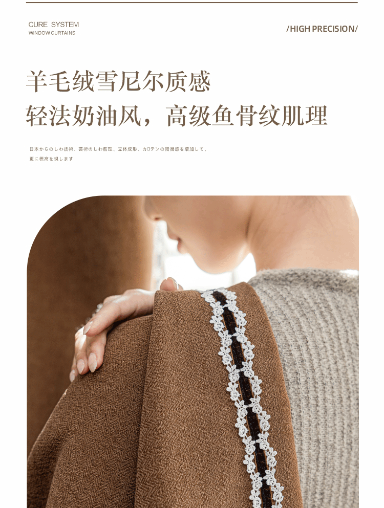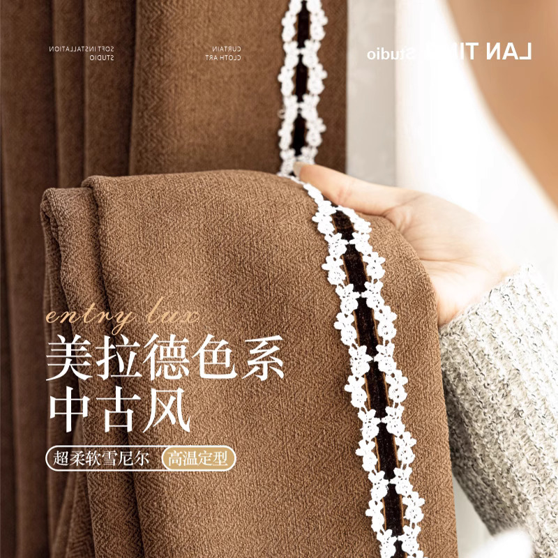 2025 프랑스 골동품 커튼 양모 원단 침실 거실 진한 베이지 Chenille Blackout 커튼 원단