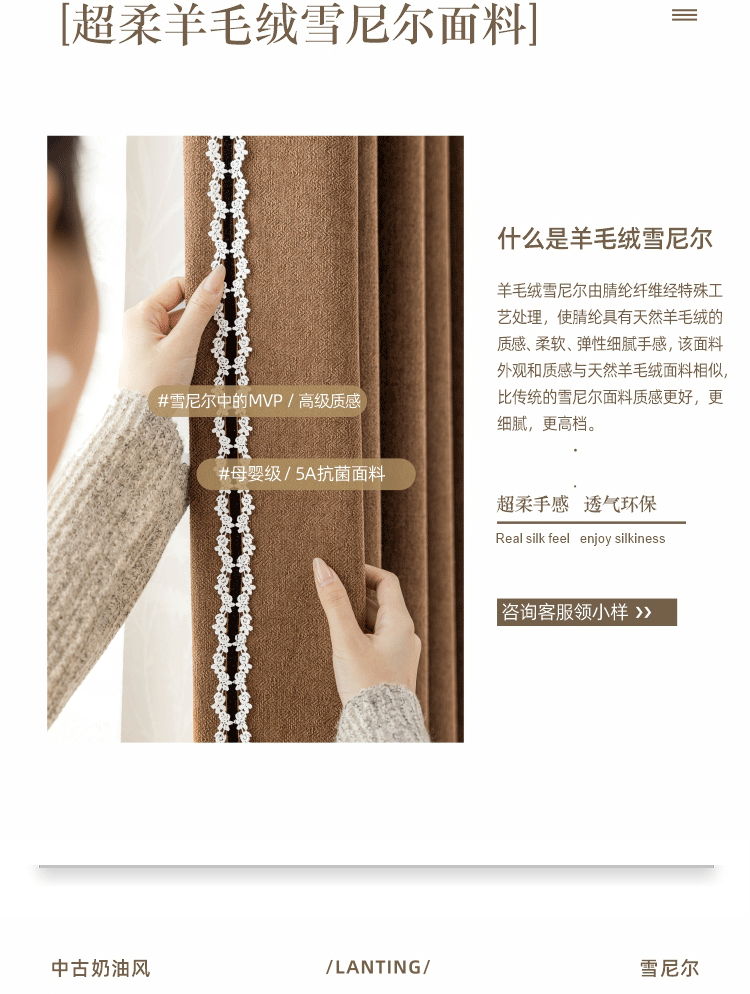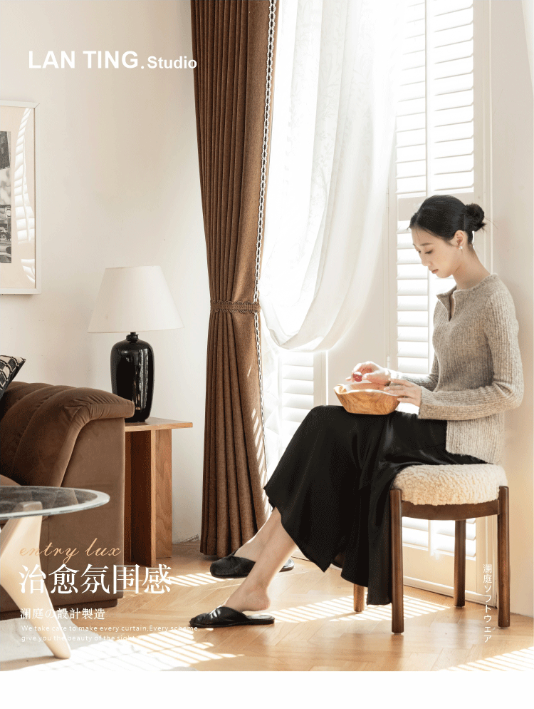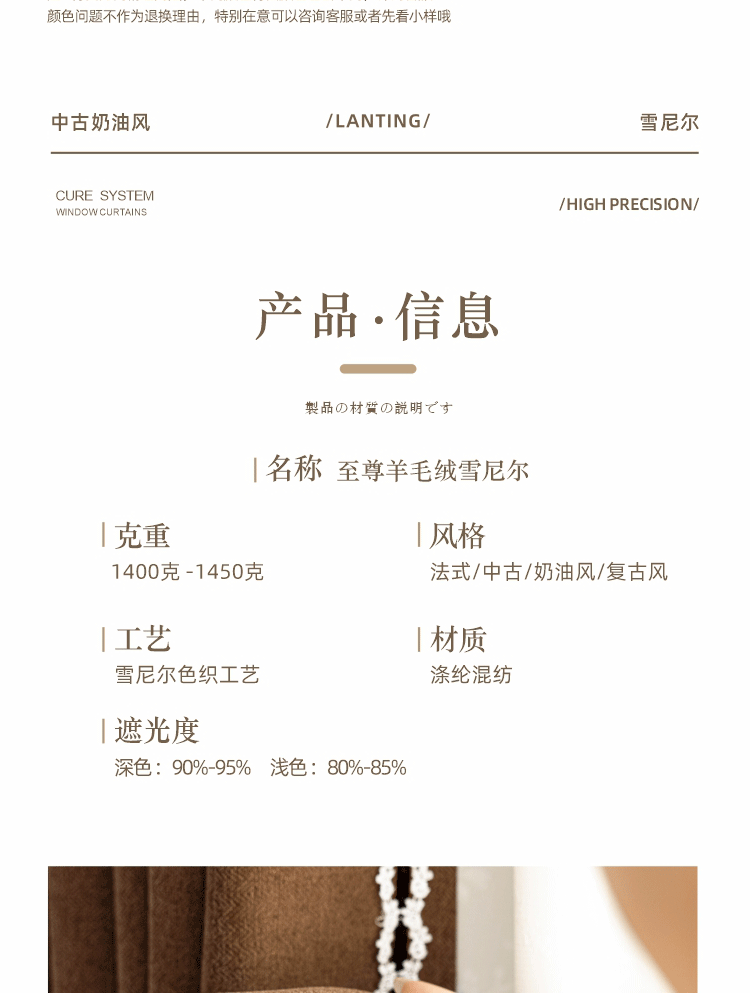 2025 프랑스 골동품 커튼 양모 원단 침실 거실 진한 베이지 Chenille Blackout 커튼 원단스토어 가기