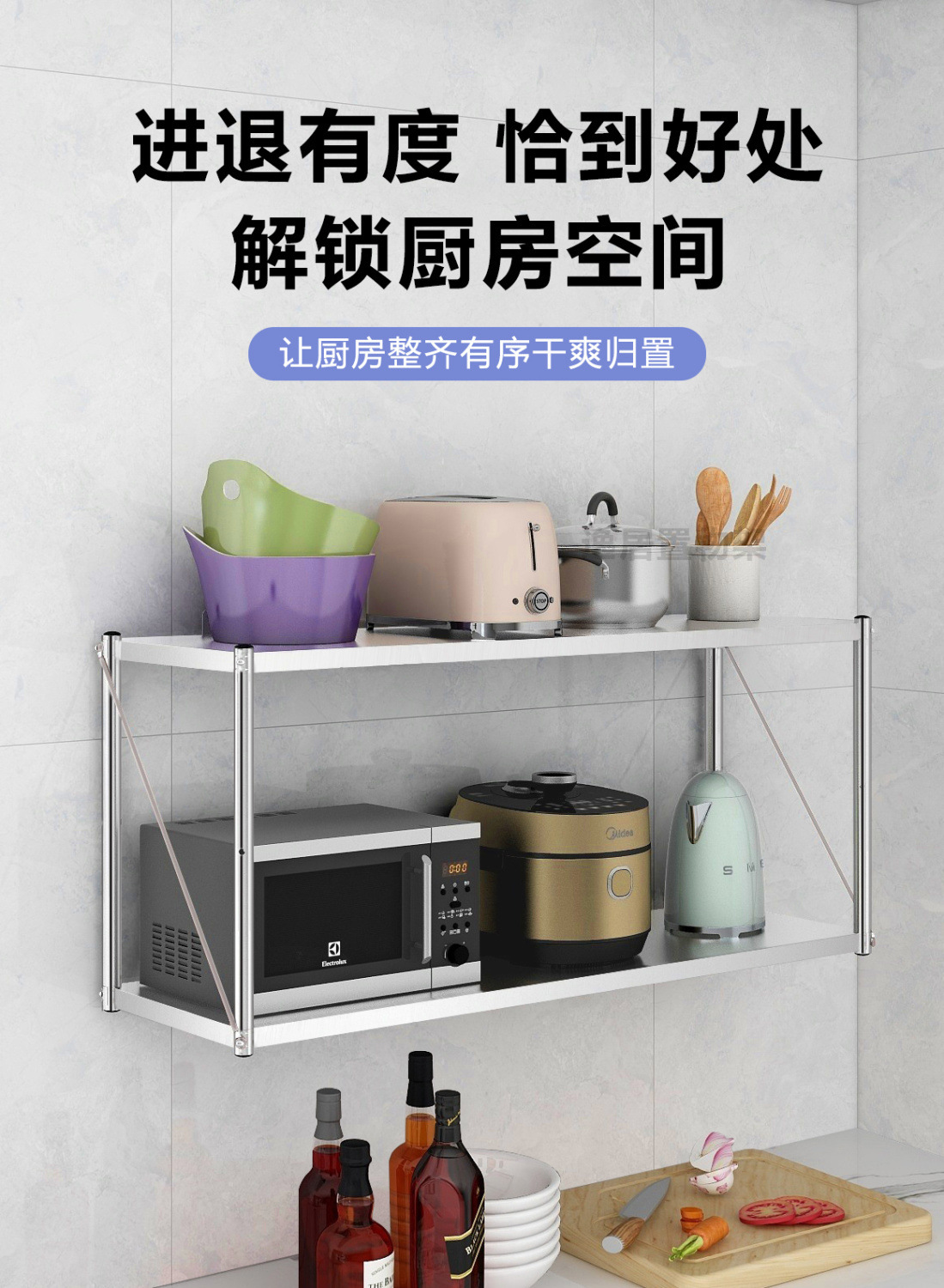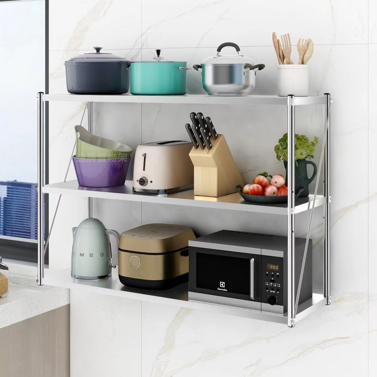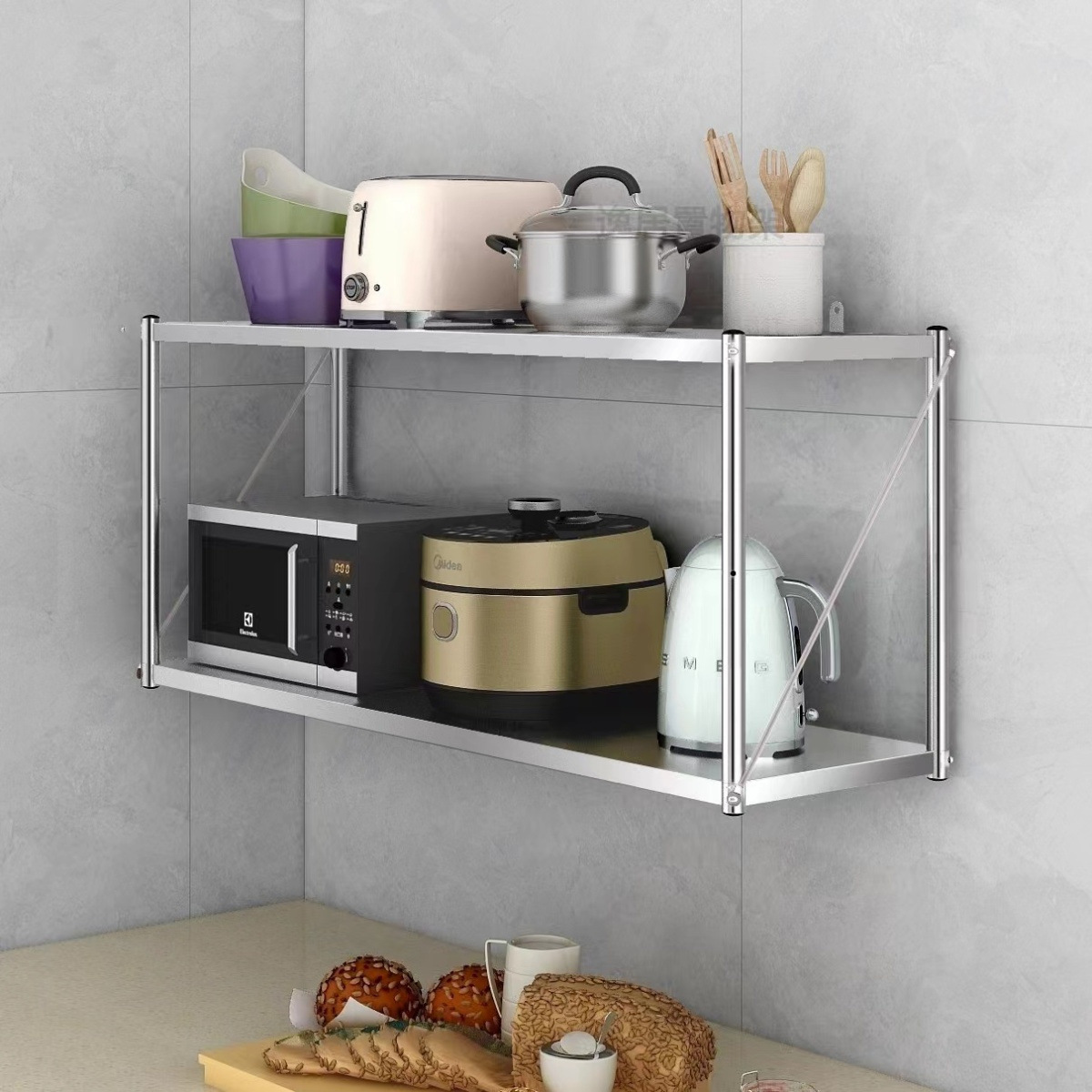 스테인레스 스틸 벽걸이 형 수납 선반 주방 벽 수납 선반 벽걸이 형 행거 전자 레인지 냄비 및 그릇 조미료 수납 선반