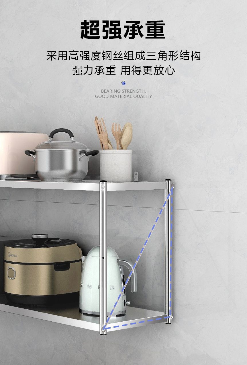 스테인레스 스틸 벽걸이 형 수납 선반 주방 벽 수납 선반 벽걸이 형 행거 전자 레인지 냄비 및 그릇 조미료 수납 선반스토어 가기