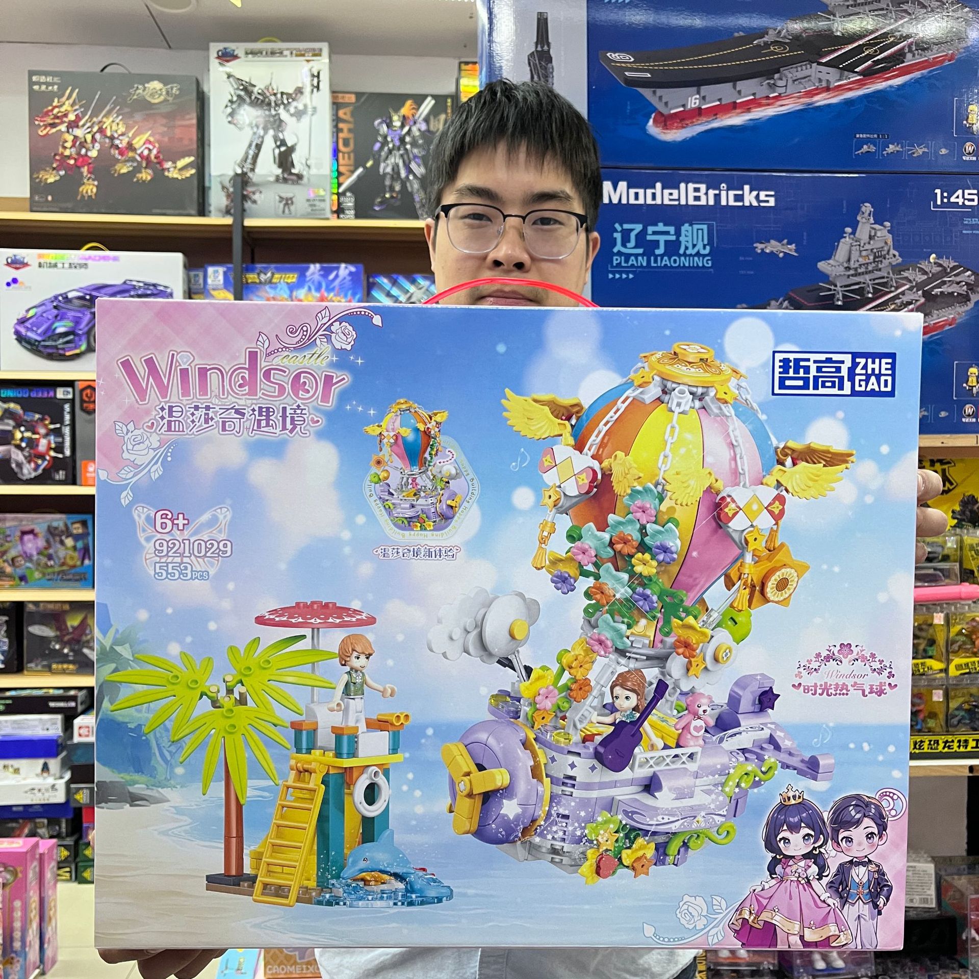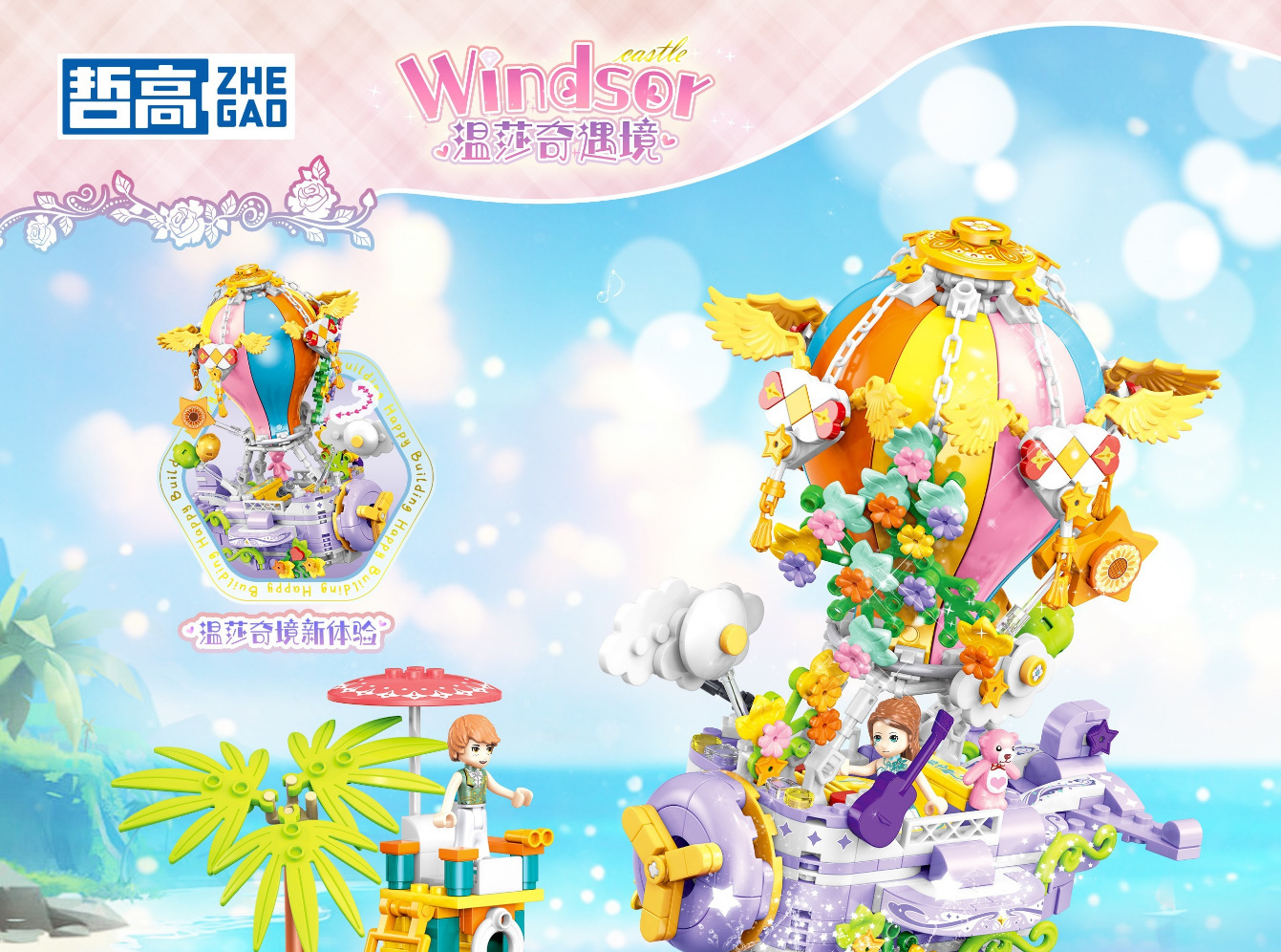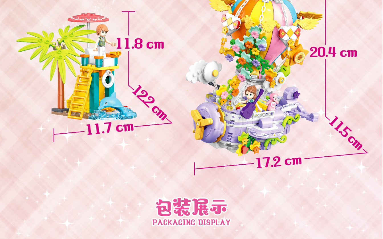 Zhegao Shasha 꿈의 성 달 배 열기구 빌딩 블록 모델 어린이 작은 입자 교육 조립 장난감스토어 가기