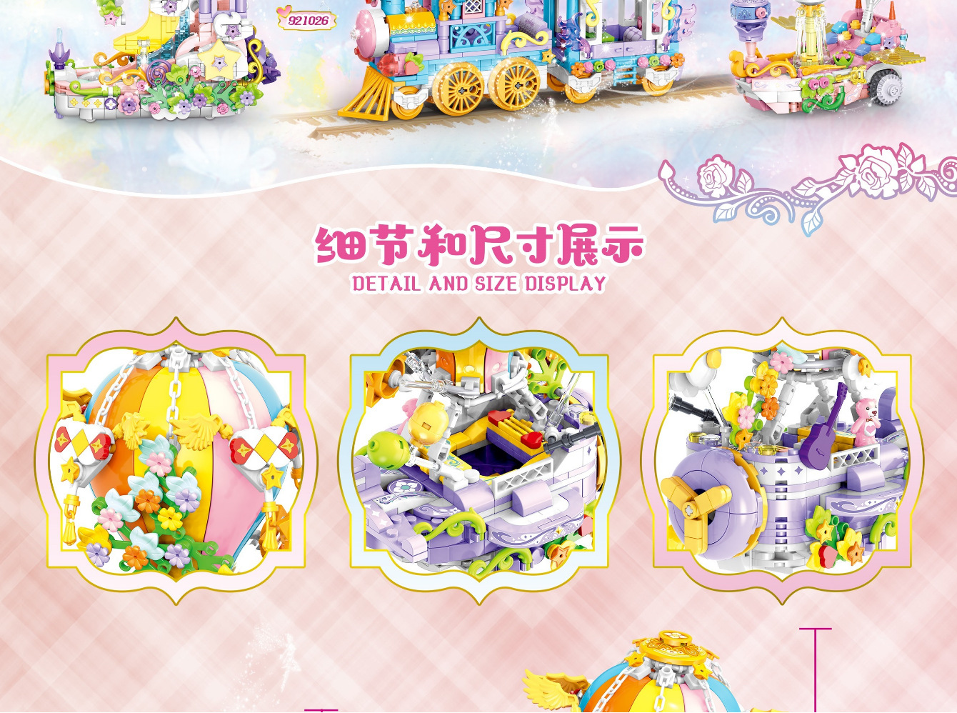 Zhegao Shasha 꿈의 성 달 배 열기구 빌딩 블록 모델 어린이 작은 입자 교육 조립 장난감