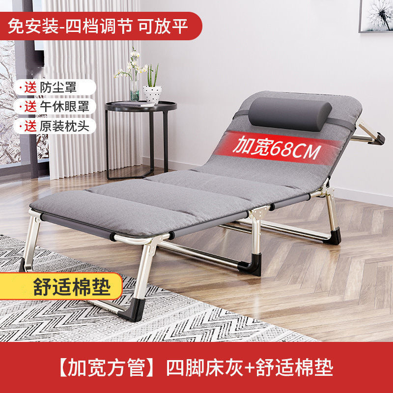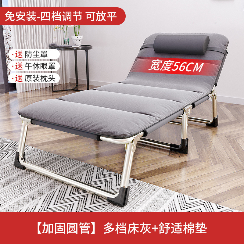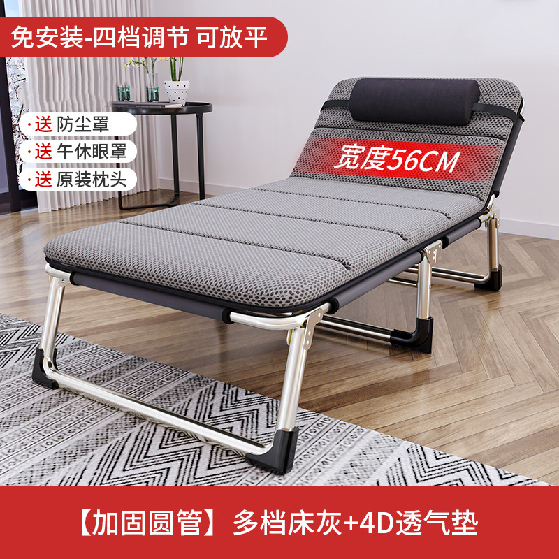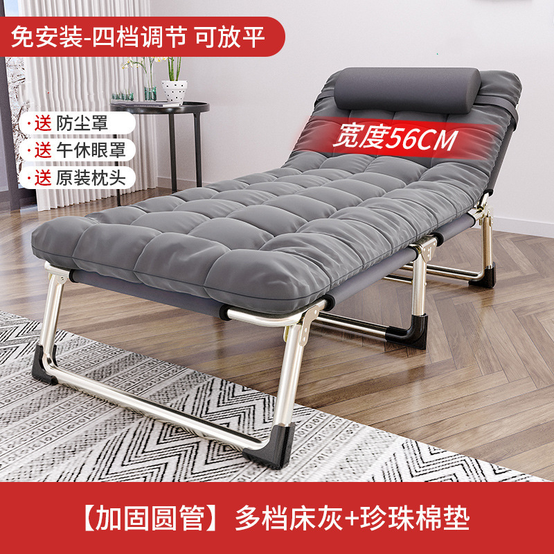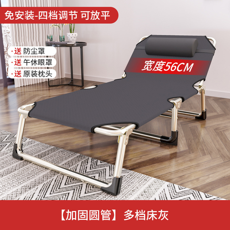 56圆管灰三脚款:175*56*30,68宽扁方管四脚款:190*68*30cm,75宽全扁方管四脚款:190*75*30cm。常规款床面为牛津布床面,四脚款的为头部多一只承重支撑脚,共4条支撑脚。三脚的头部无支撑脚,共3条支撑脚。圆管直径22mm,厚度0.7mm;方管直径25mm,厚度0.7mm。