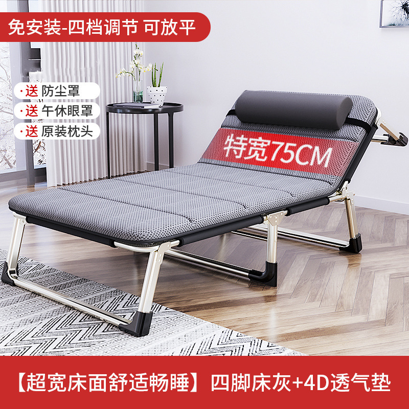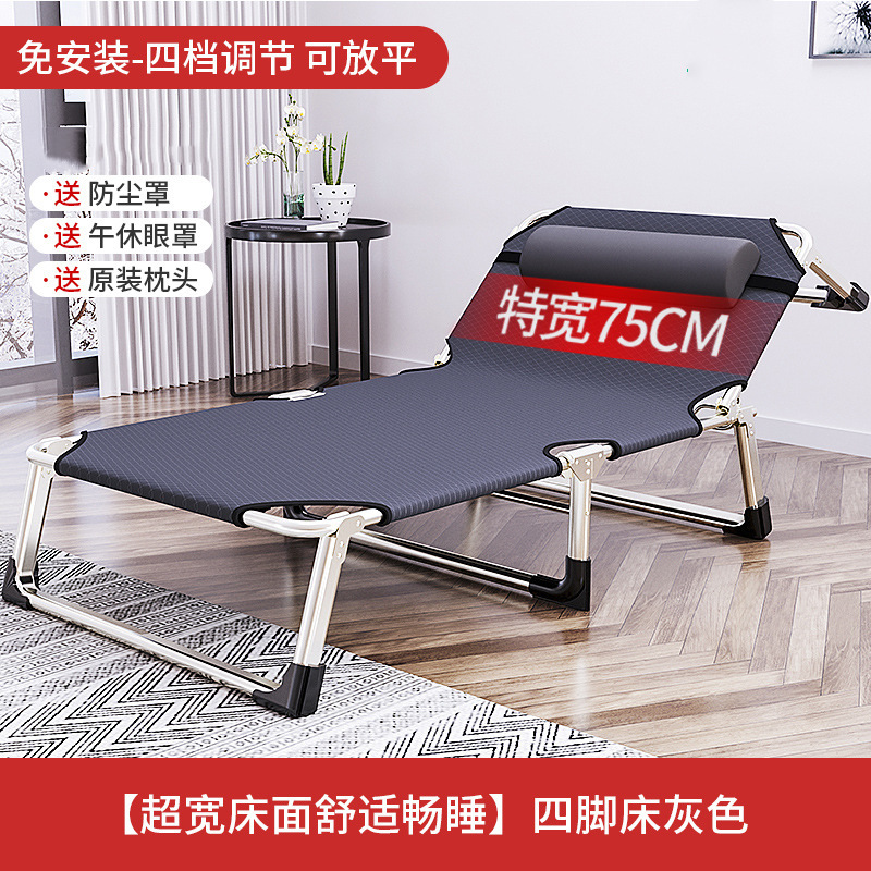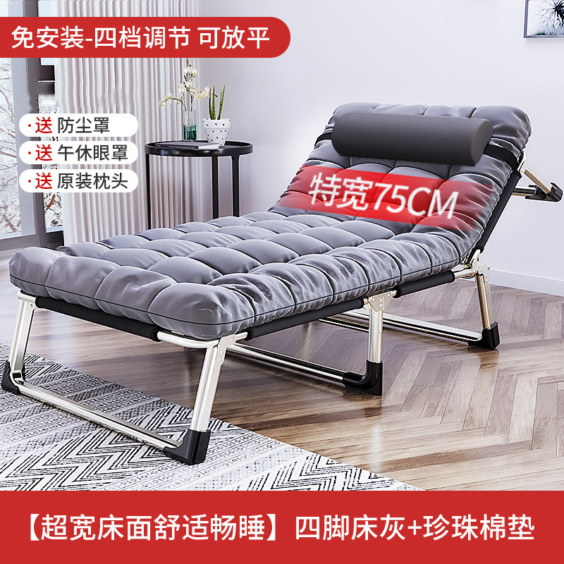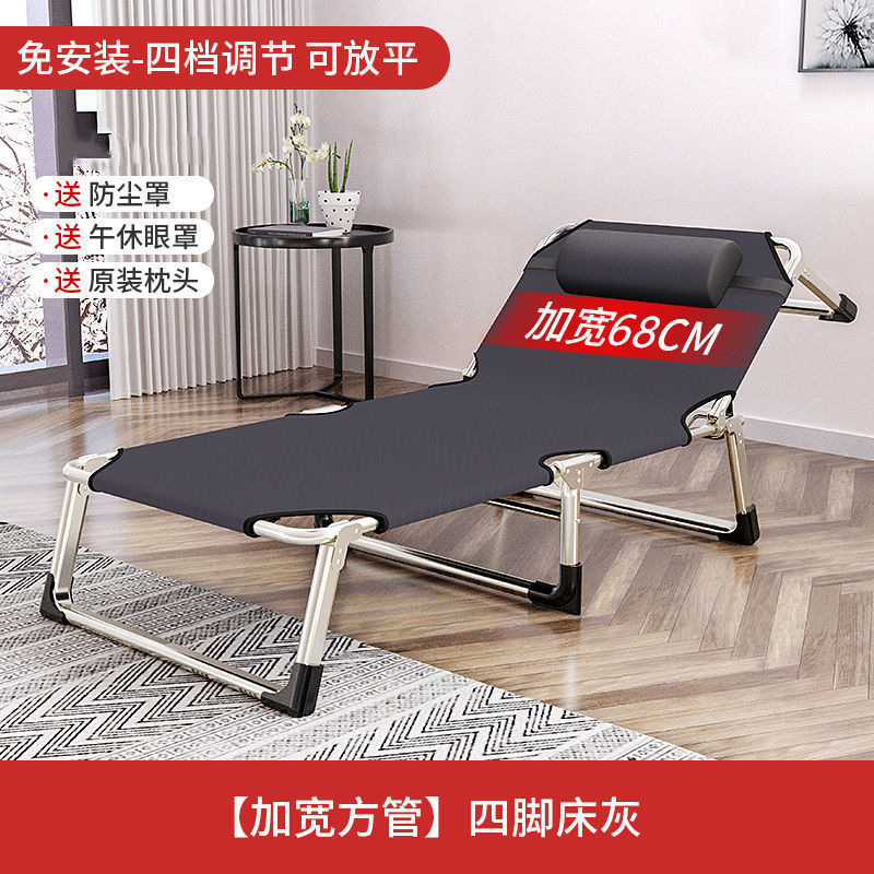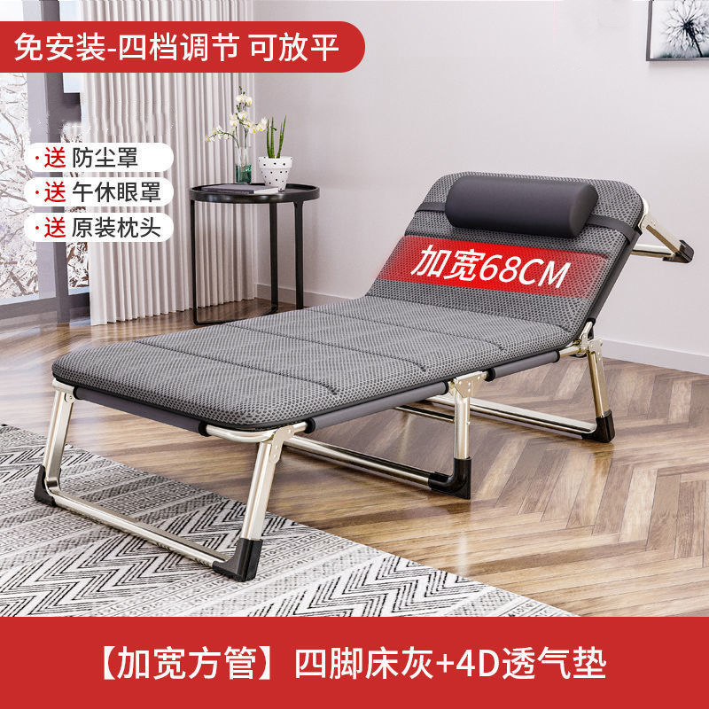 56圆管灰三脚款:175*56*30,68宽扁方管四脚款:190*68*30cm,75宽全扁方管四脚款:190*75*30cm。常规款床面为牛津布床面,四脚款的为头部多一只承重支撑脚,共4条支撑脚。三脚的头部无支撑脚,共3条支撑脚。圆管直径22mm,厚度0.7mm;方管直径25mm,厚度0.7mm。