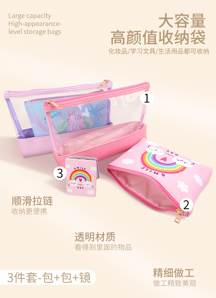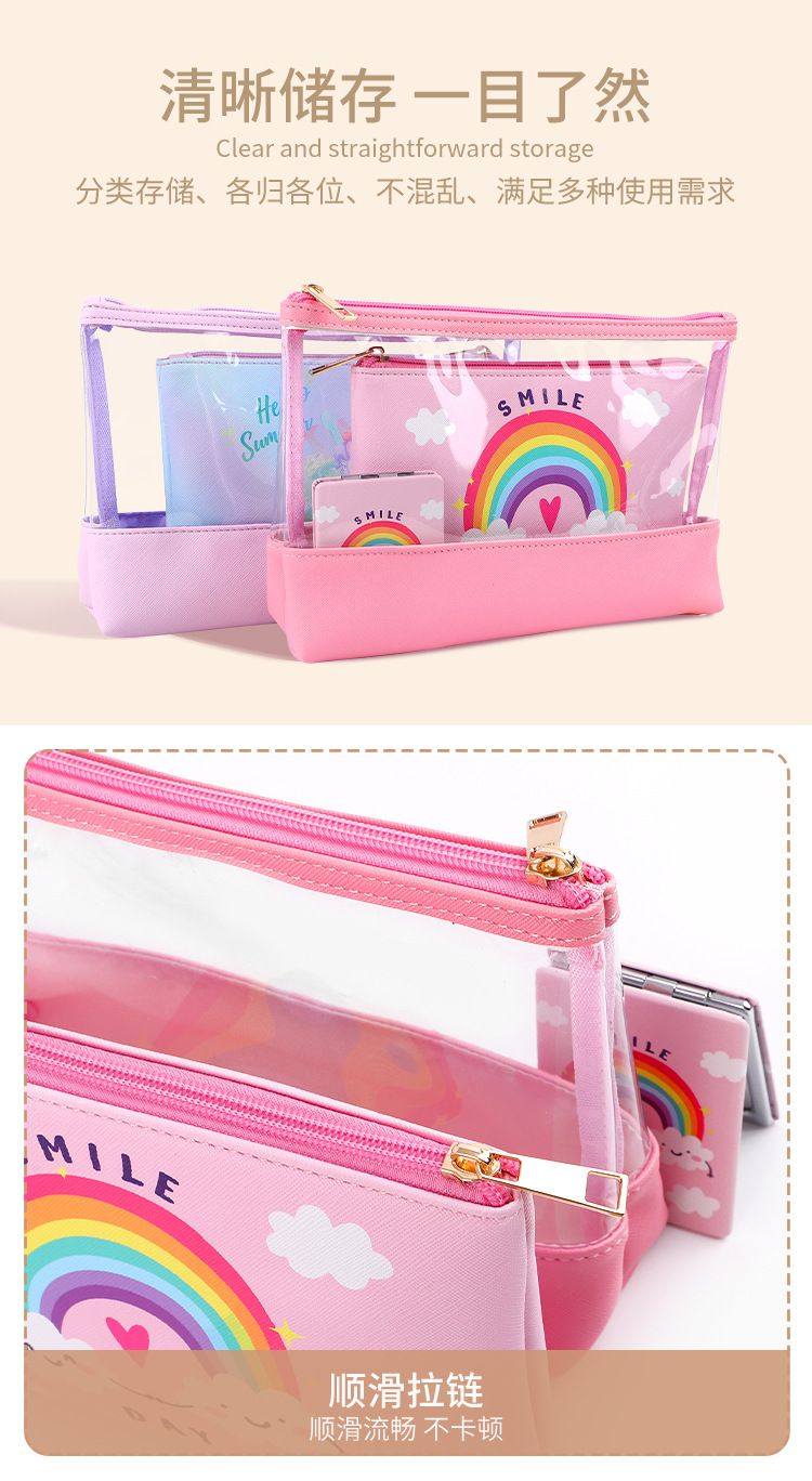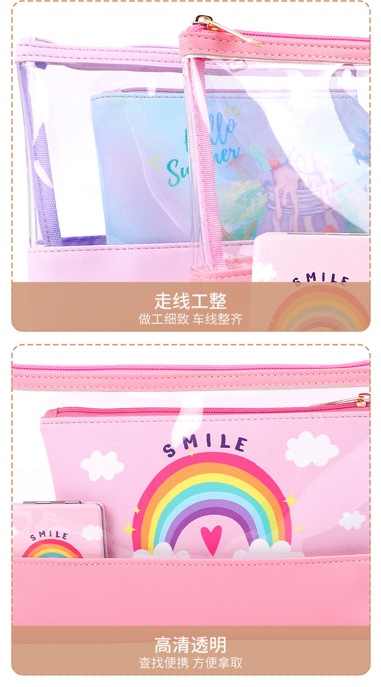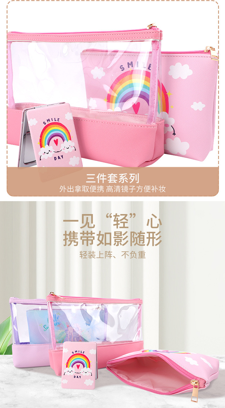 맞춤형 화장품 가방 PU 가죽 PVC 투명 가방 여행용 수납 가방 투피스 세트 기능적이고 실용적스토어 가기