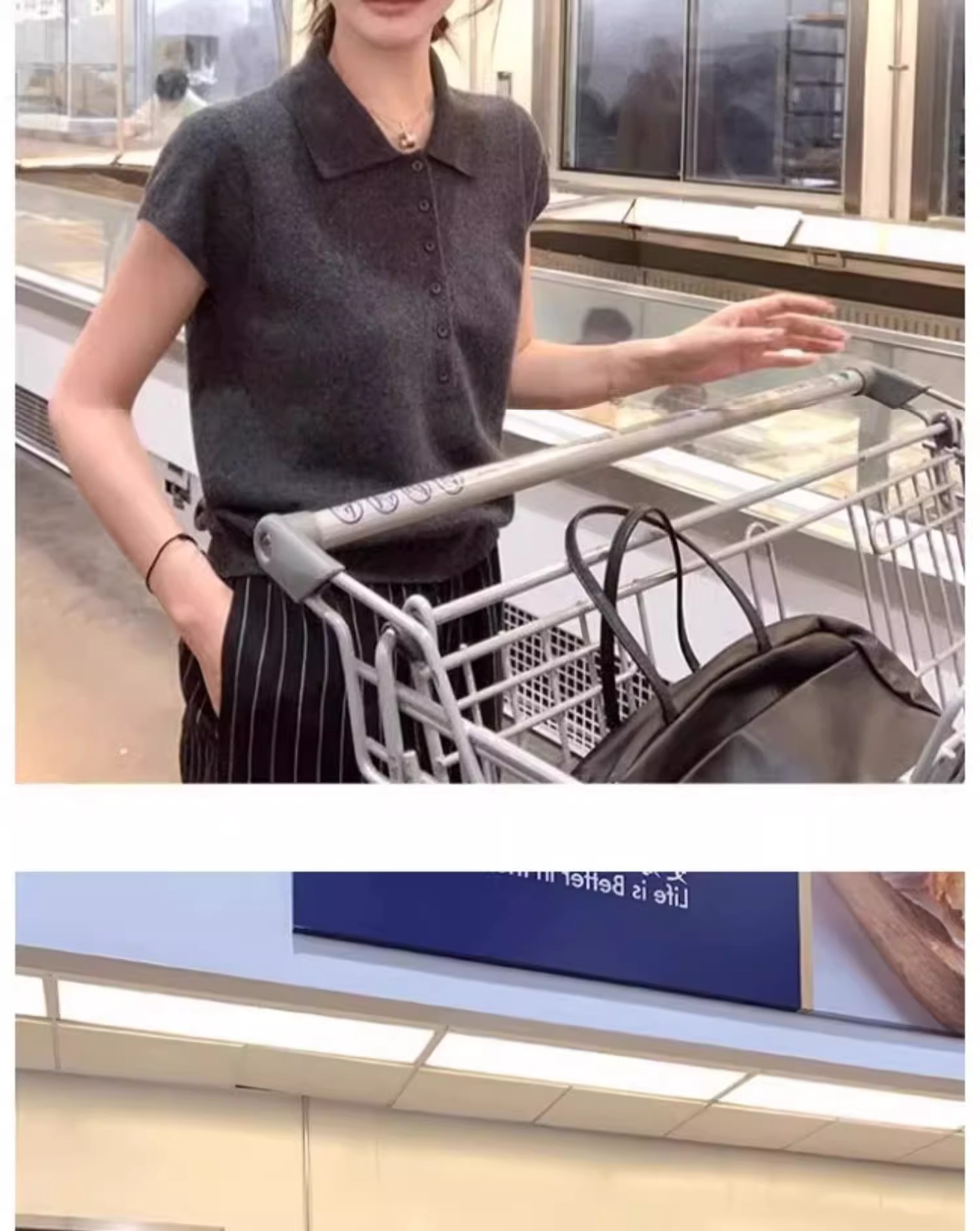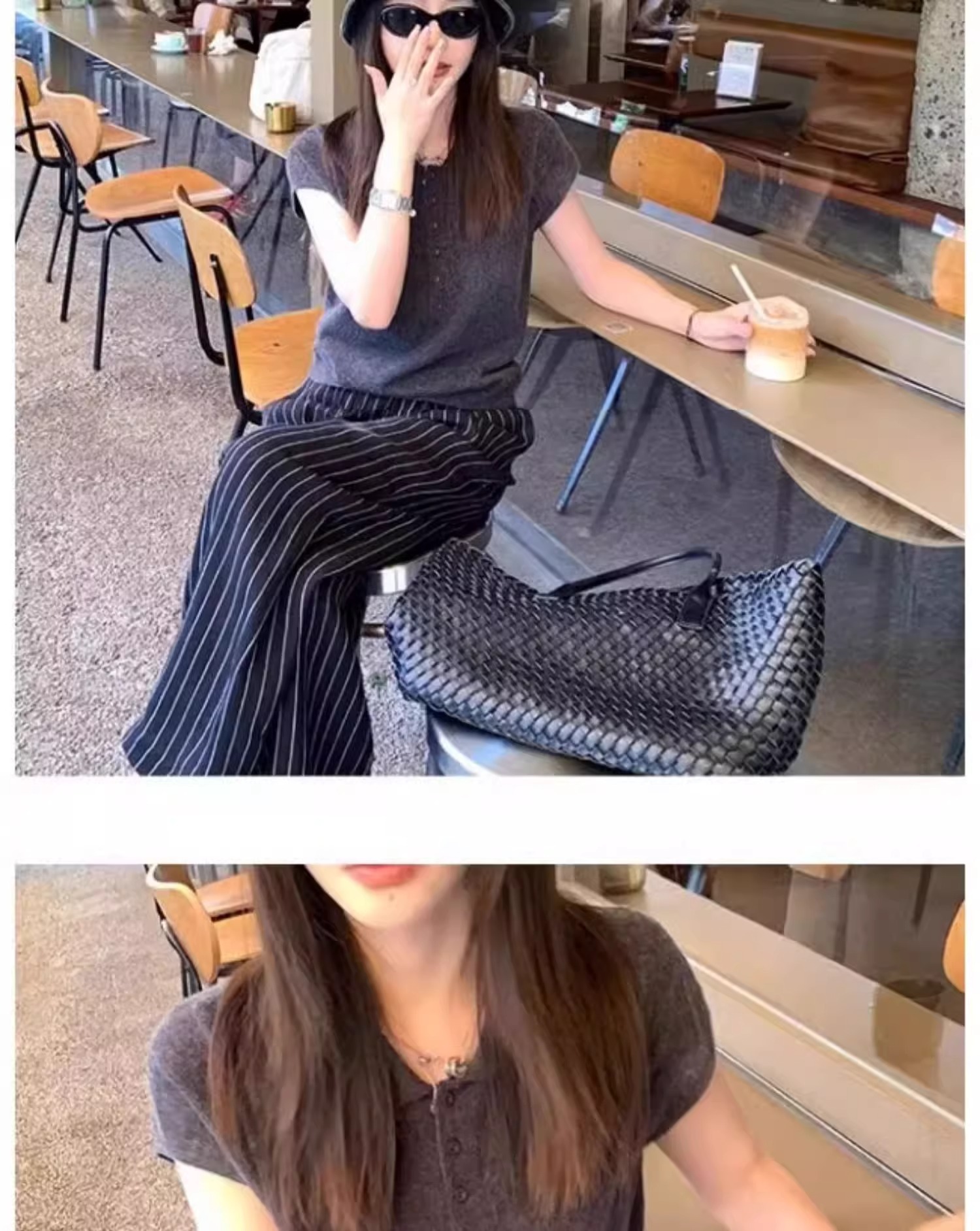 여름용 여성용 그레이 라펠 니트 반팔 티셔츠 아이스 실크 얇은 슬림핏 오른쪽 어깨 폴로 셔츠 기질 짧은 탑스토어 가기