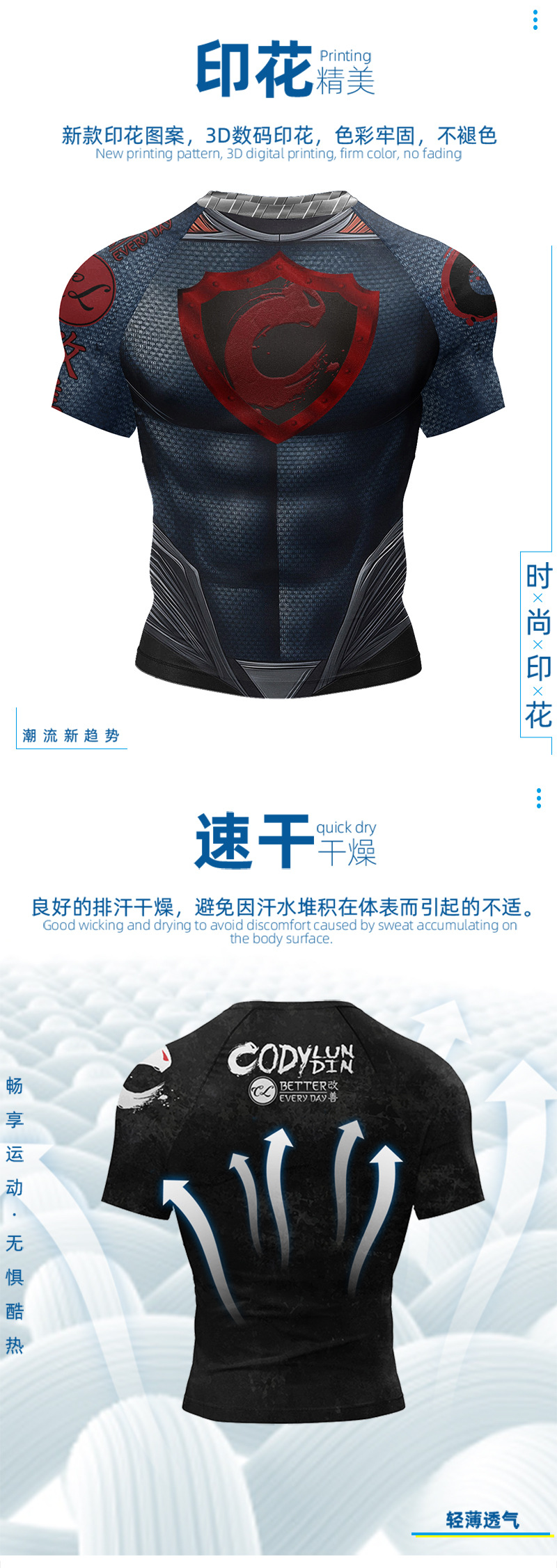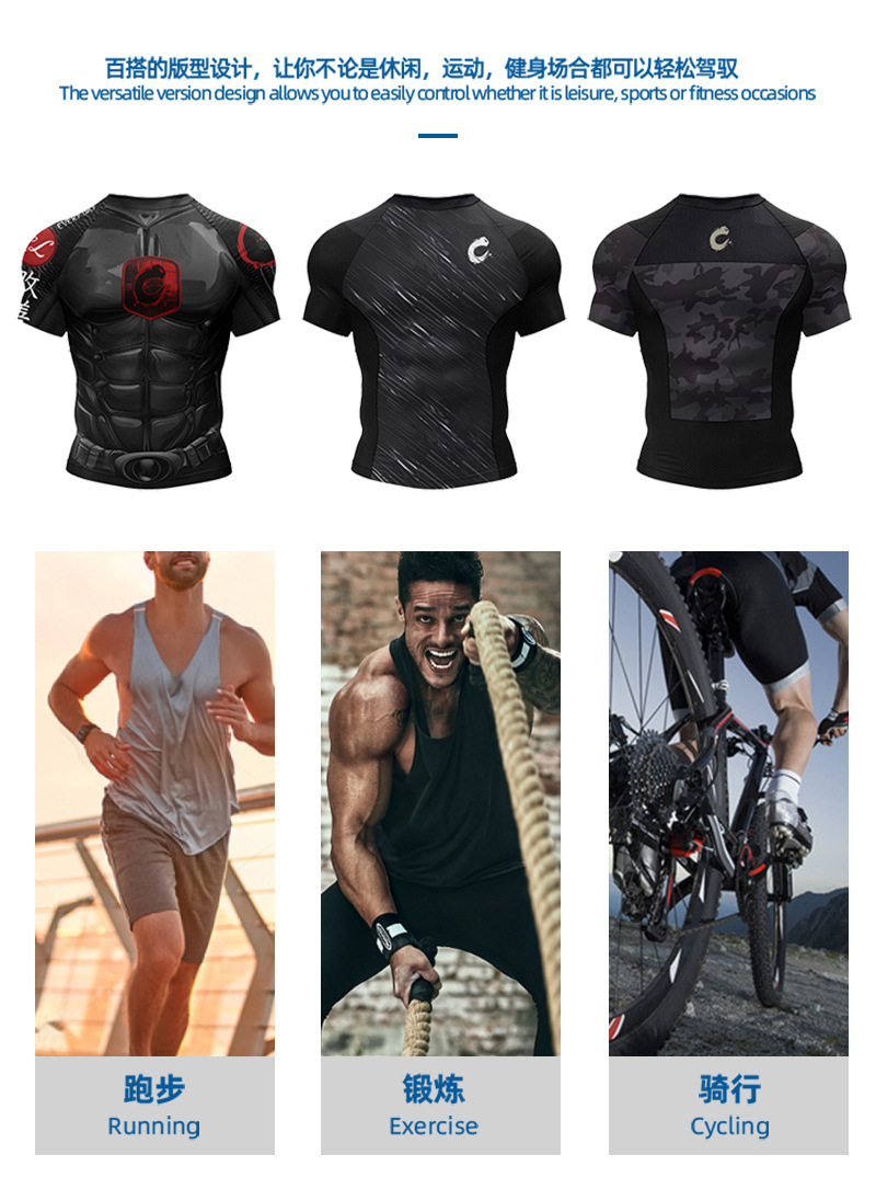 유럽과 미국의 AliExpress 25 새로운 크로스보더 남성용 프린트 반팔 통기성 땀 흡수 속건성 러닝 스포츠 반팔