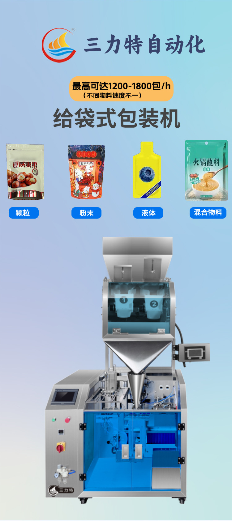 과립 분말 자동 포장기 스탠드업 파우치 지퍼백 사전 제작된 파우치 캔디 밀가루 곡물 포장기스토어 가기