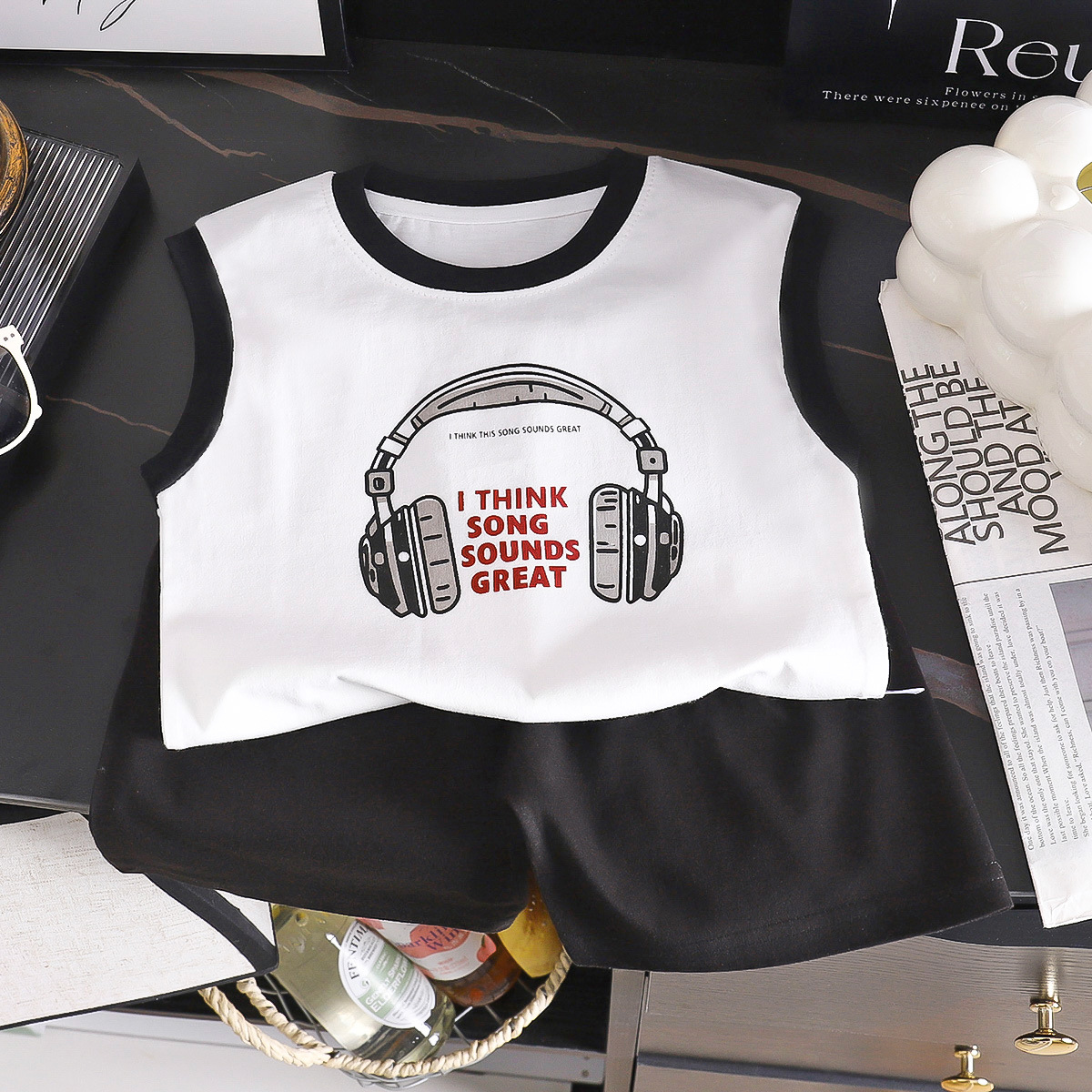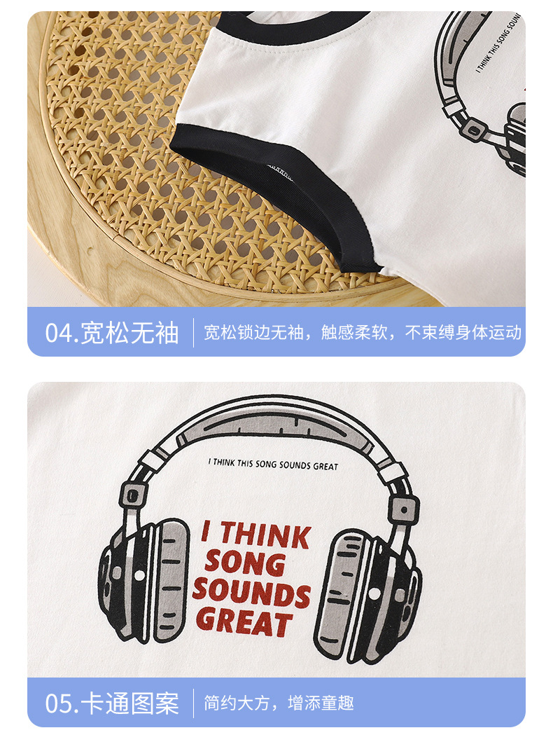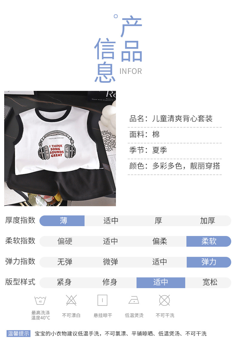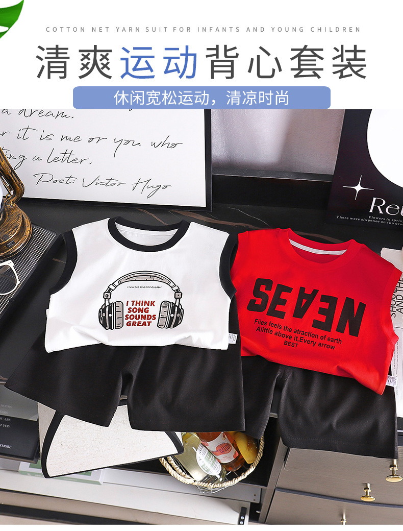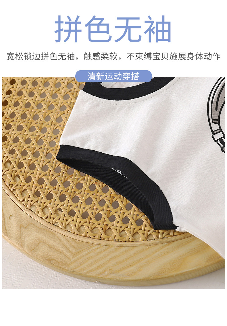 어린이 조끼 여름 새로운 순수 코튼 정장 소년 한국어 버전 아기 넓은 어깨 티셔츠 탑 반바지 아동 의류 도매스토어 가기