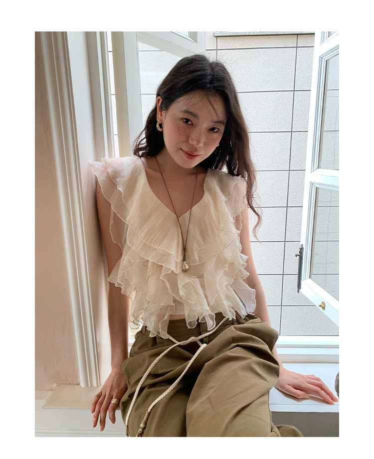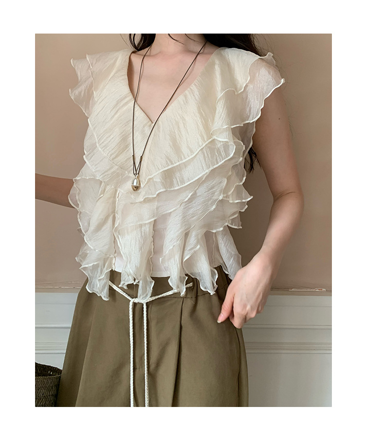 Quanlimei NEWOPEN 25 여름 프랑스 스타일 부드러운 스타일 분위기 서양식 시크 슈퍼 요정 쉬폰 셔츠 여성 S5568