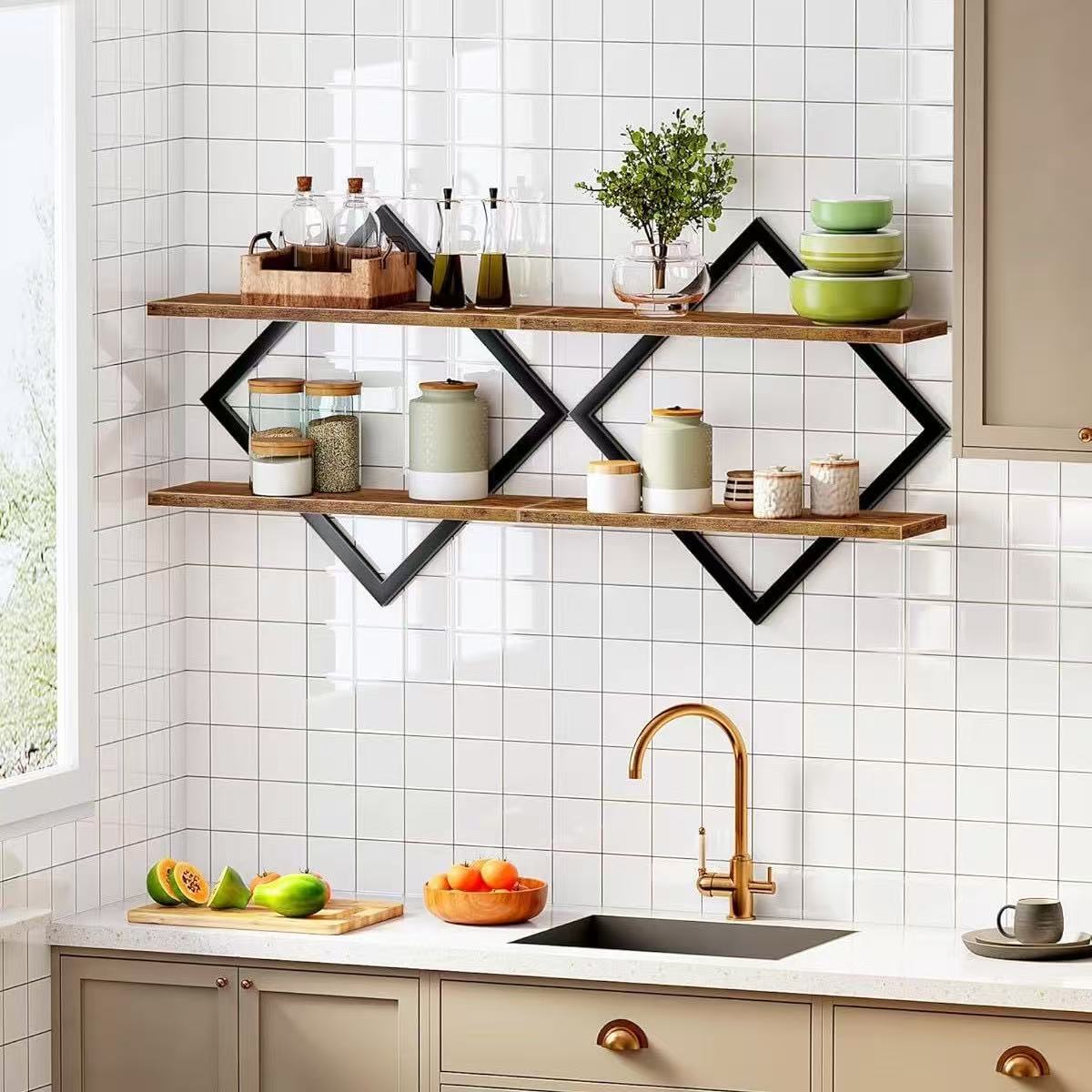 나무 벽걸이 형 선반 꽃병 장식품 배치 랙 벽 장식 랙 가정용 잡화 보관 단단한 나무 랙스토어 가기