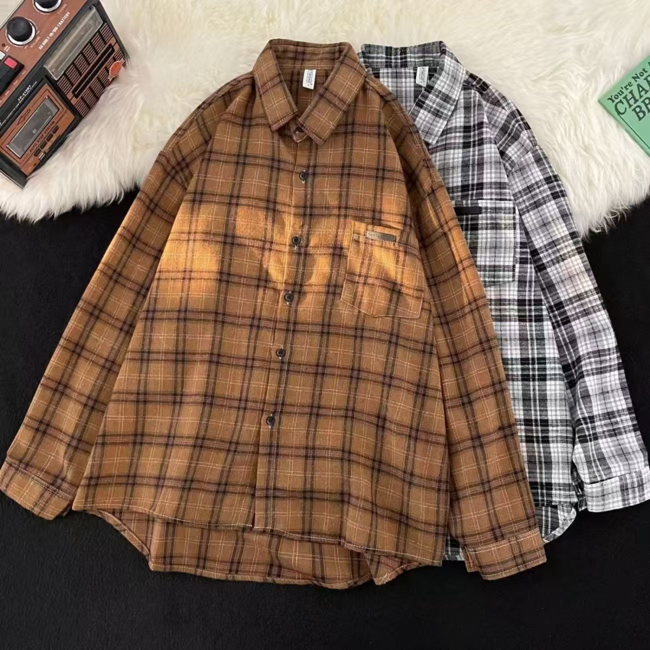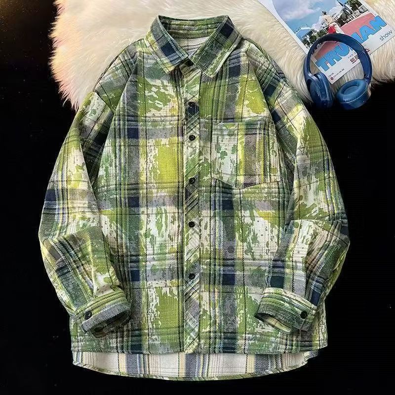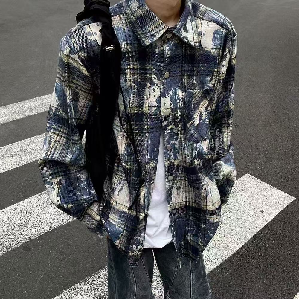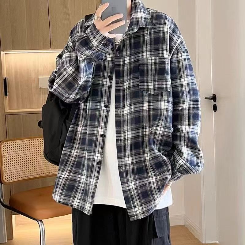 남성용 블루 긴팔 체크 무늬 셔츠, 클린핏, 레이지 스타일 재킷, 보이시 스타일, 도매