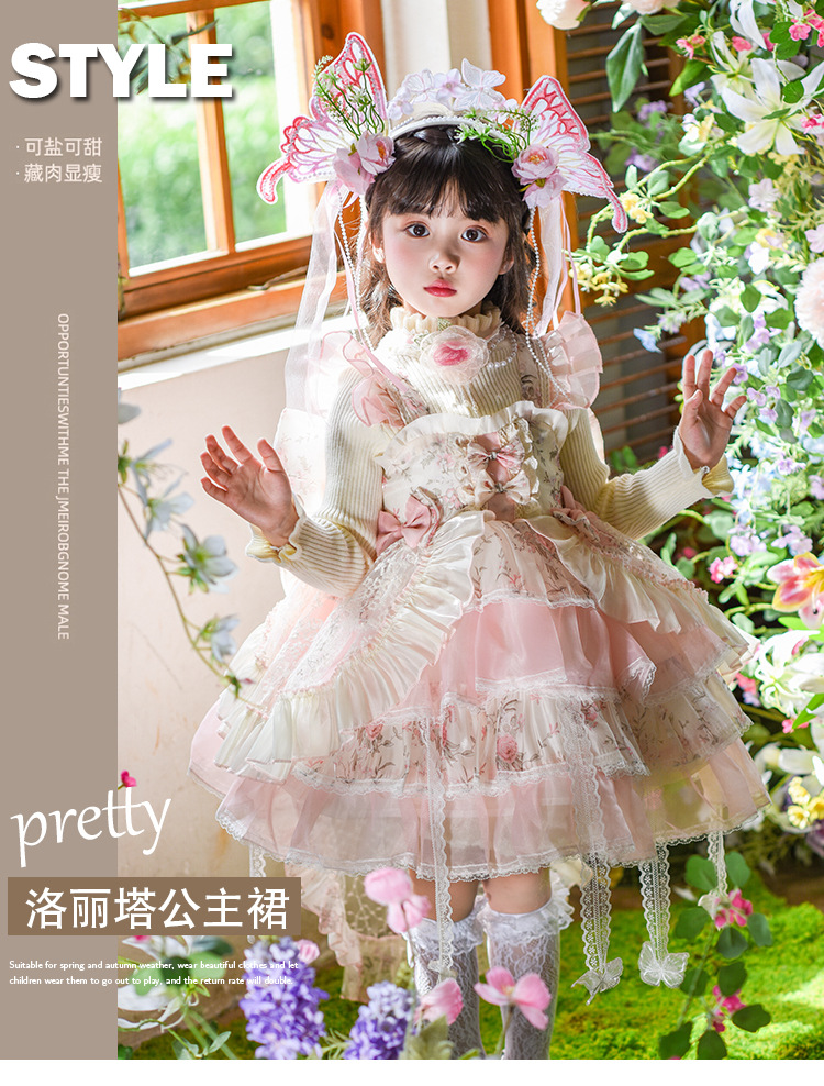 여아 드레스 가을 2026 신상 아동용 로리타 모네 가든 공주 드레스 생일 드레스 퍼프 스커트