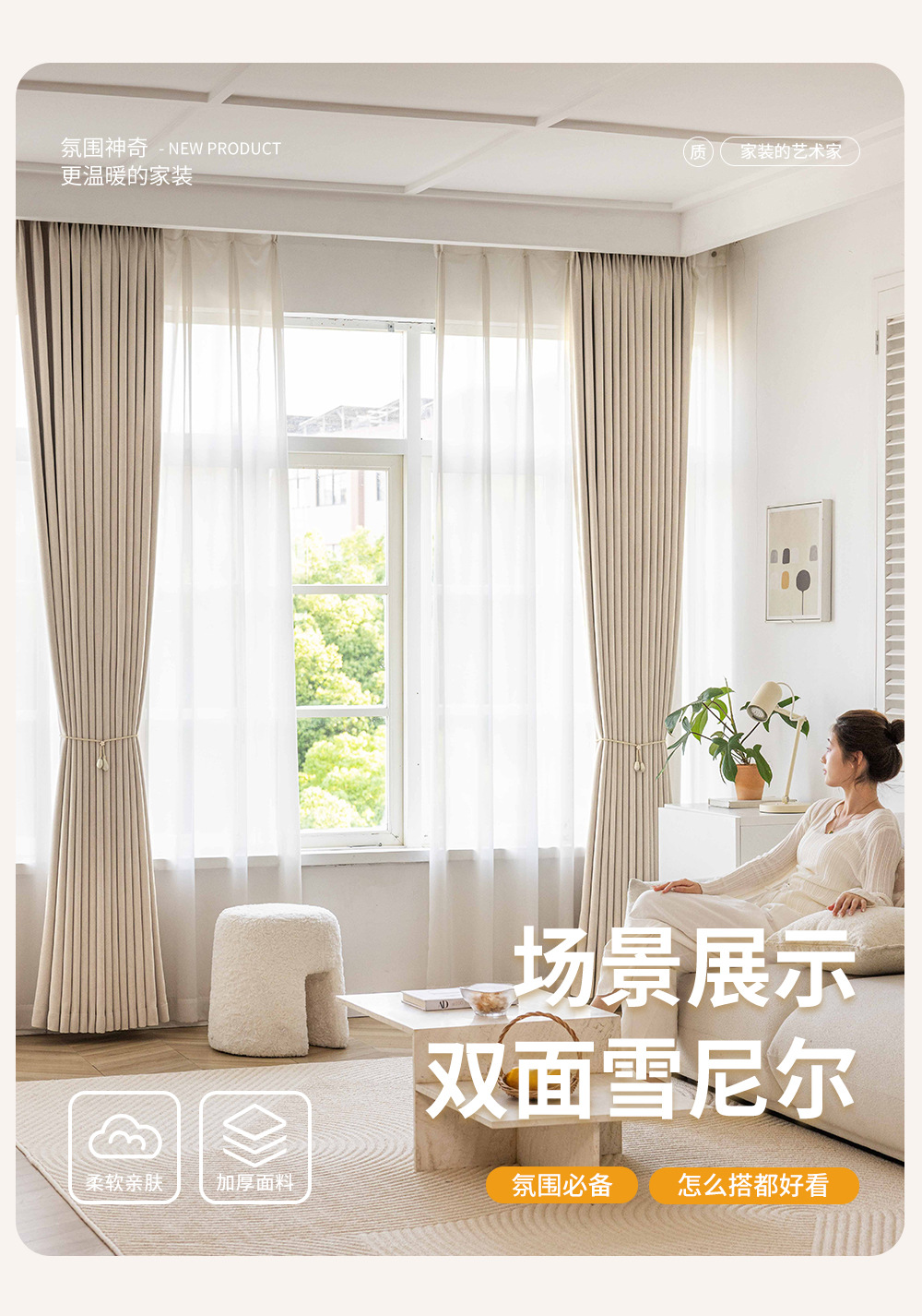 양면 체닐 커튼 블랙 아웃 마스터 2025 풀 블랙 아웃 크림 스타일 거실 발코니 침실 프리미엄 센스