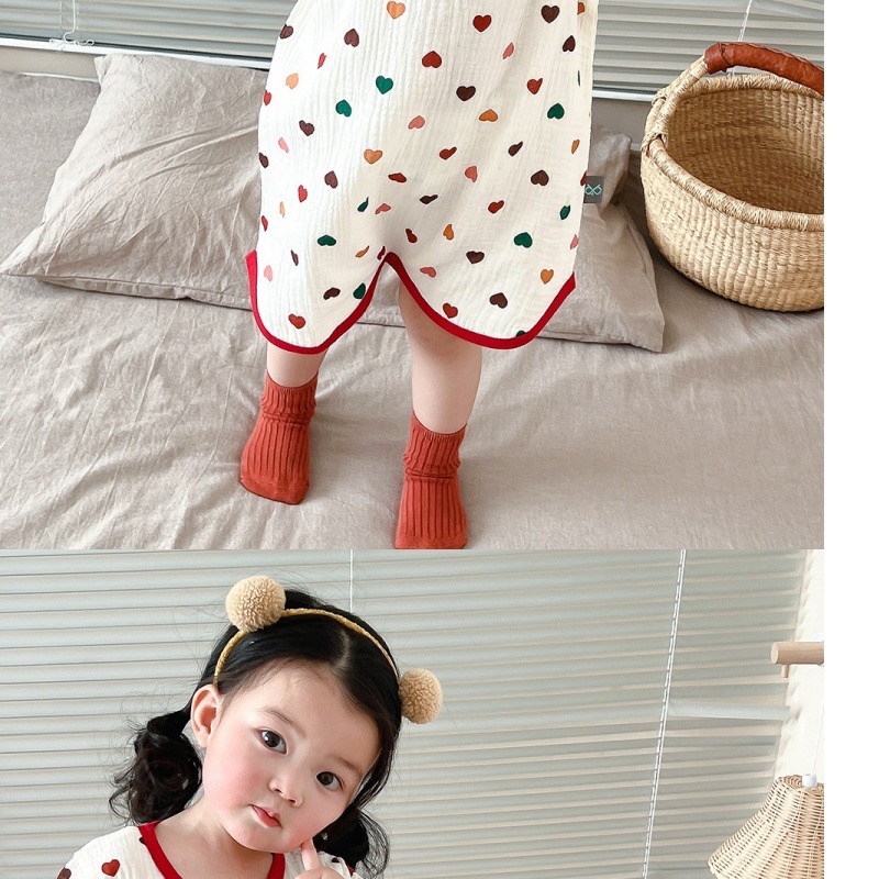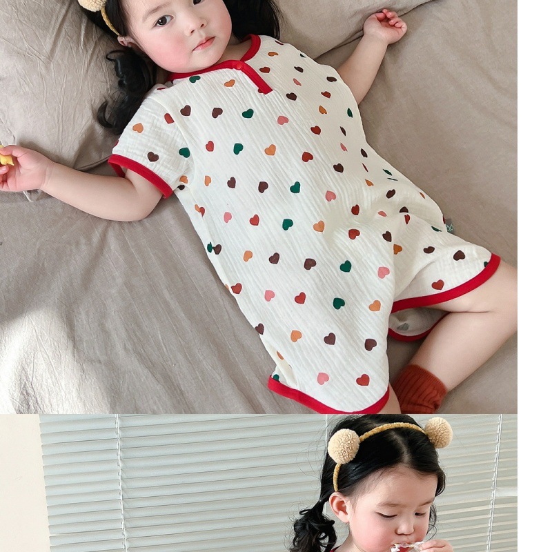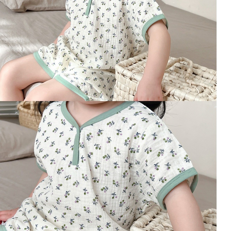 아기 원피스 잠옷 여름 얇은 소녀 순수 코튼 거즈 잠옷 반팔 어린이 가정 의류 남성용 안티 킥 잠옷스토어 가기