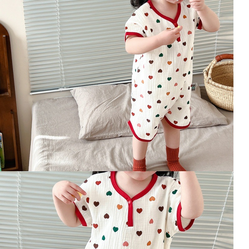 아기 원피스 잠옷 여름 얇은 소녀 순수 코튼 거즈 잠옷 반팔 어린이 가정 의류 남성용 안티 킥 잠옷